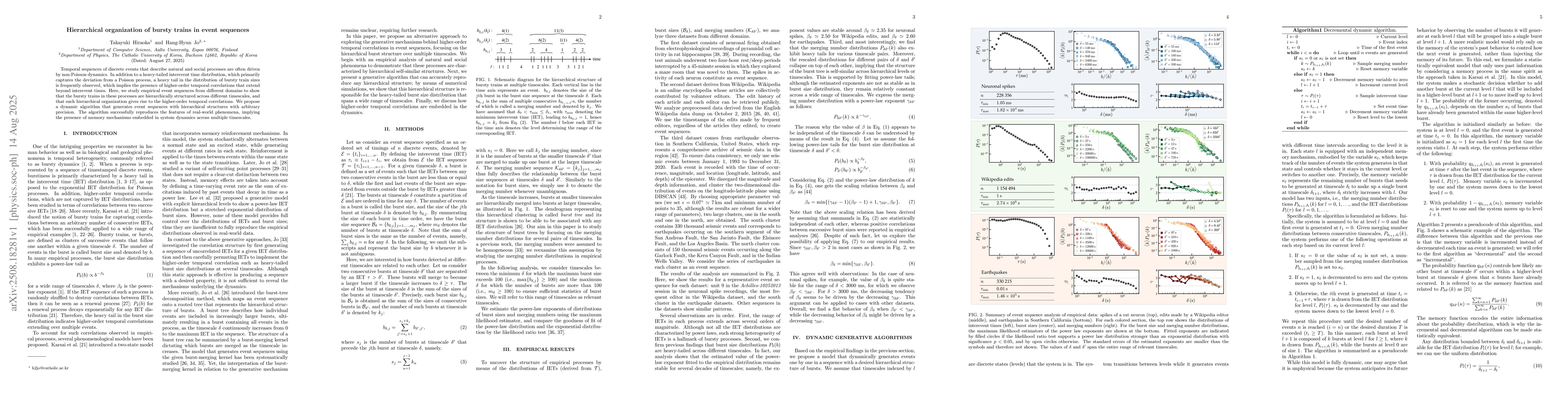 Temporal sequences of discrete events that describe natural and social processes are often driven by non-Poisson dynamics. In addition to a heavy-tailed interevent time distribution, which primarily captures the deviation from a Poisson process, a heavy tail in the distribution of bursty train sizes is frequently observed, which implies the presence of higher-order temporal correlations that extend beyond interevent times. Here, we study empirical event sequences from different domains to show that the bursty trains in these processes are hierarchically structured across different timescales, and that such hierarchical organization gives rise to the higher-order temporal correlations. We propose a dynamic algorithm that generates event sequences with hierarchical structures with arbitrary precision. The algorithm successfully reproduces the features of real-world phenomena, implying the presence of memory mechanisms embedded in system dynamics across multiple timescales.