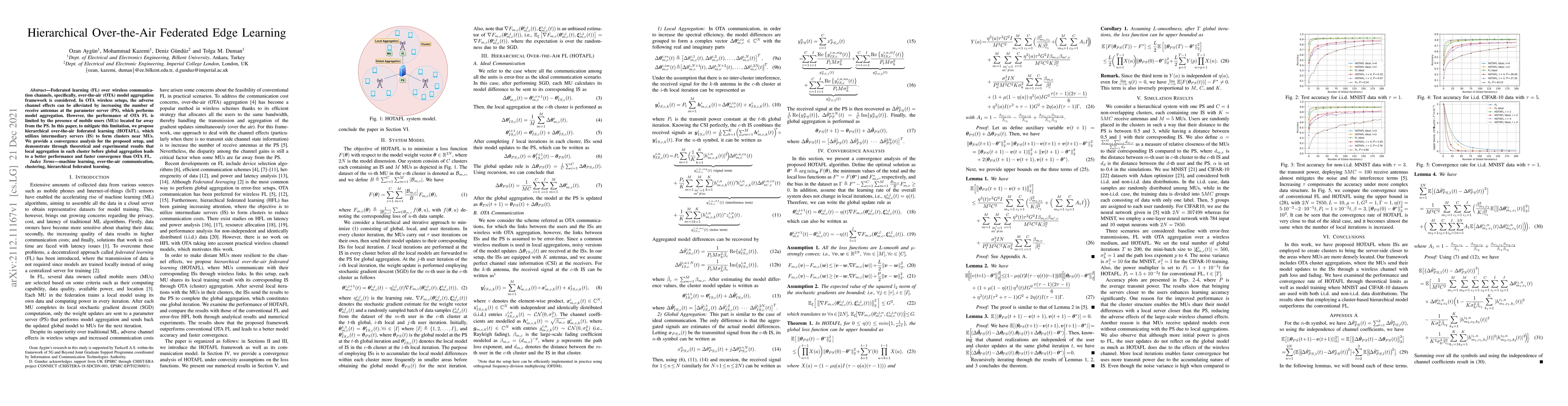 This paper proposes hierarchical over-the-air federated learning (HOTAFL) to improve federated learning performance in wireless setups by using intermediary servers to cluster mobile users. The method shows better performance and faster convergence compared to traditional OTA federated learning due to local aggregation before global aggregation.