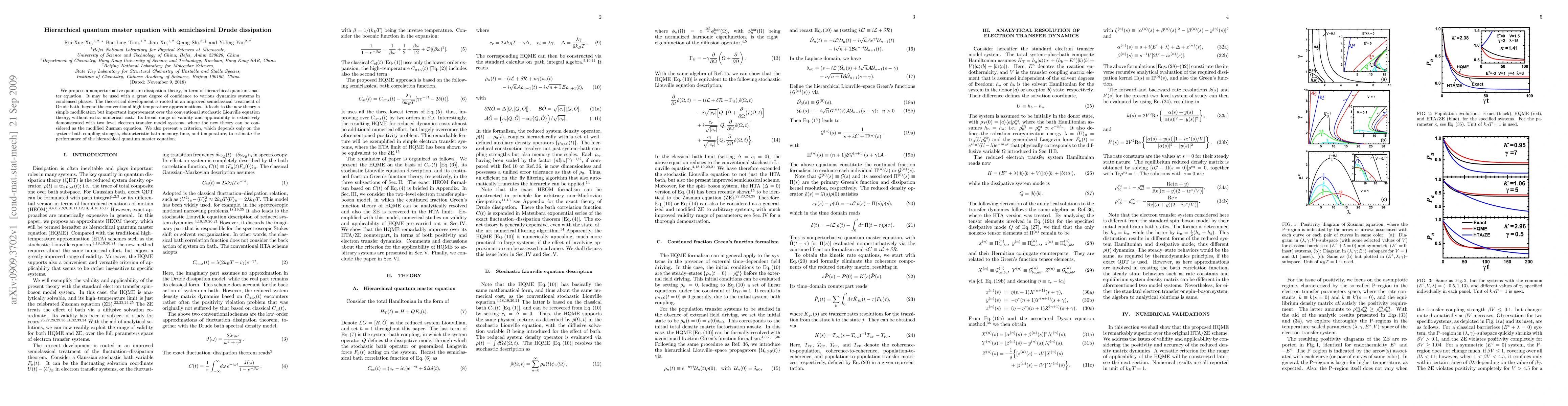 We propose a nonperturbative quantum dissipation theory, in term of hierarchical quantum master equation. It may be used with a great degree of confidence to various dynamics systems in condensed phases. The theoretical development is rooted in an improved semiclassical treatment of Drude bath, beyond the conventional high temperature approximations. It leads to the new theory a simple modification but important improvement over the conventional stochastic Liouville equation theory, without extra numerical cost. Its broad range of validity and applicability is extensively demonstrated with two--level electron transfer model systems, where the new theory can be considered as the modified Zusman equation. We also present a criterion, which depends only on the system--bath coupling strength, characteristic bath memory time, and temperature, to estimate the performance of the hierarchical quantum master equation.
