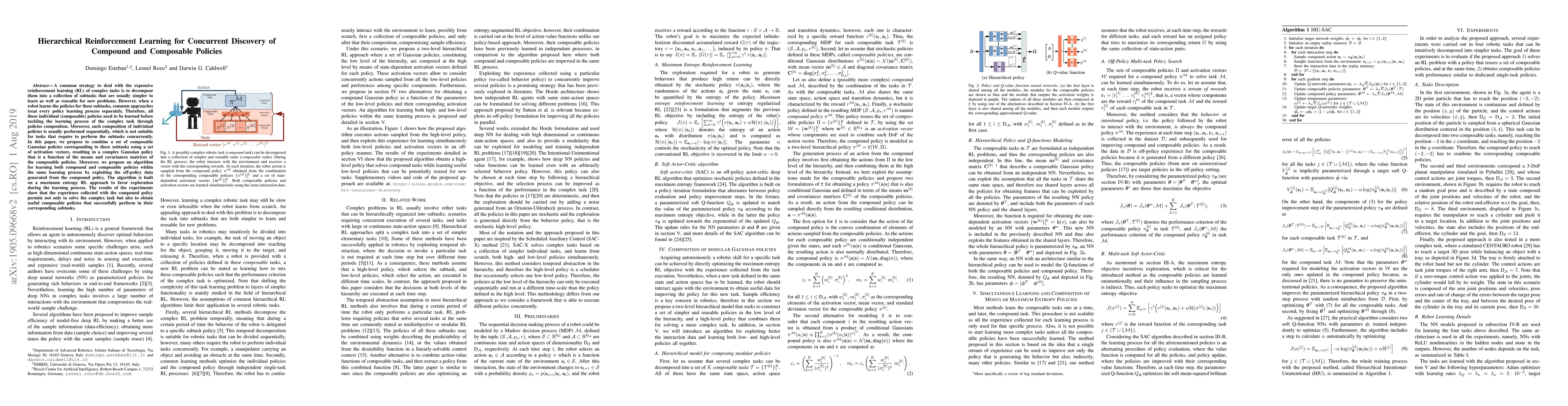 This paper proposes a hierarchical reinforcement learning method to concurrently discover compound and composable policies for complex tasks by decomposing them into simpler subtasks. The approach learns both types of policies simultaneously using off-policy data, enabling efficient exploration and concurrent execution of subtasks.