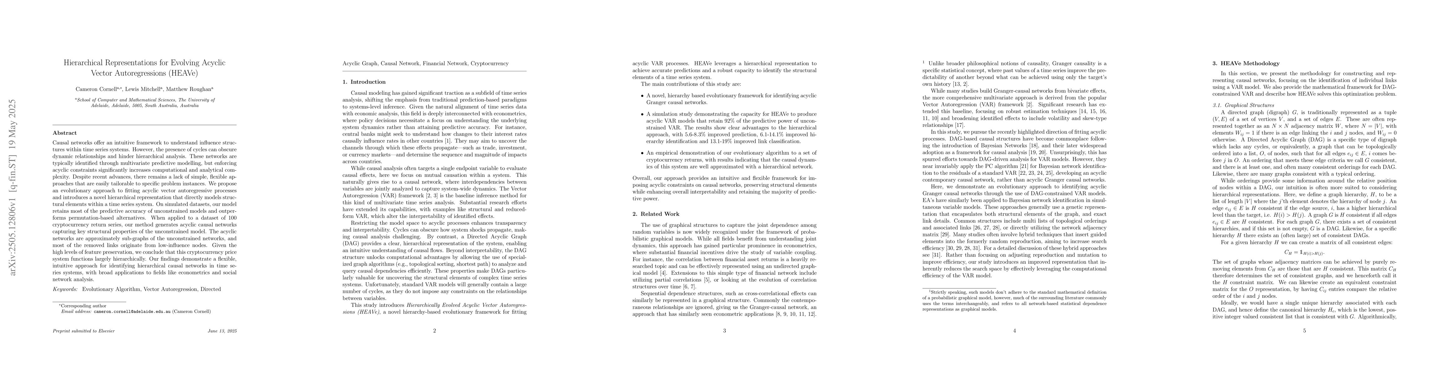 Researchers propose an evolutionary approach to fit acyclic vector autoregressive processes, generating hierarchical causal networks that retain predictive accuracy and capture key structural properties.