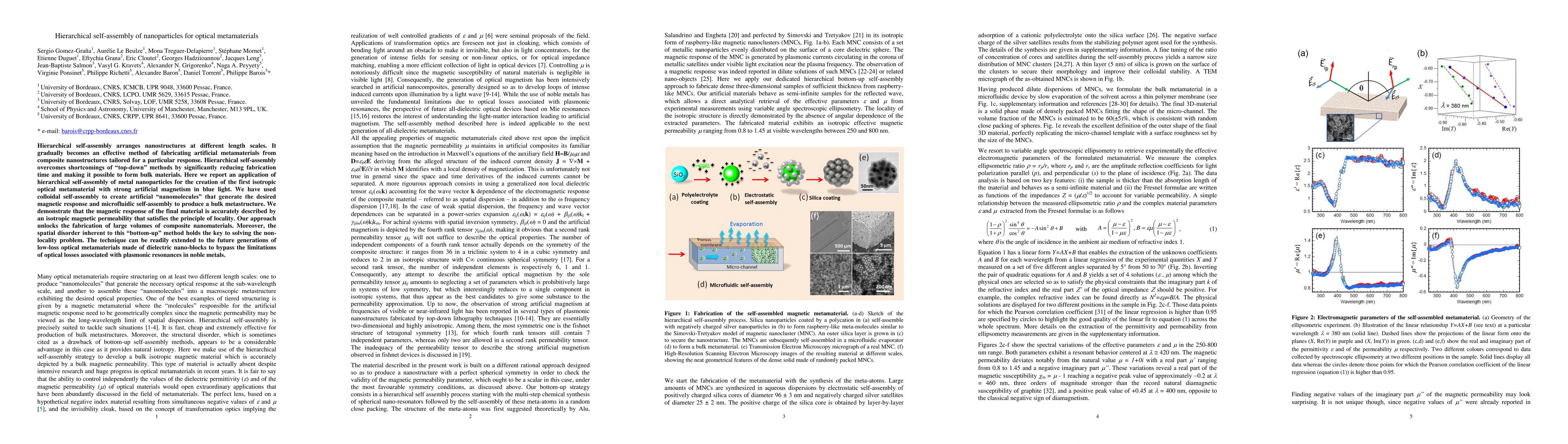 This paper explores the hierarchical self-assembly of metal nanoparticles to create an isotropic optical metamaterial with strong artificial magnetism in blue light, demonstrating the potential for large-volume fabrication and overcoming limitations of traditional "top-down" methods. The technique promises future applications in low-loss optical metamaterials.