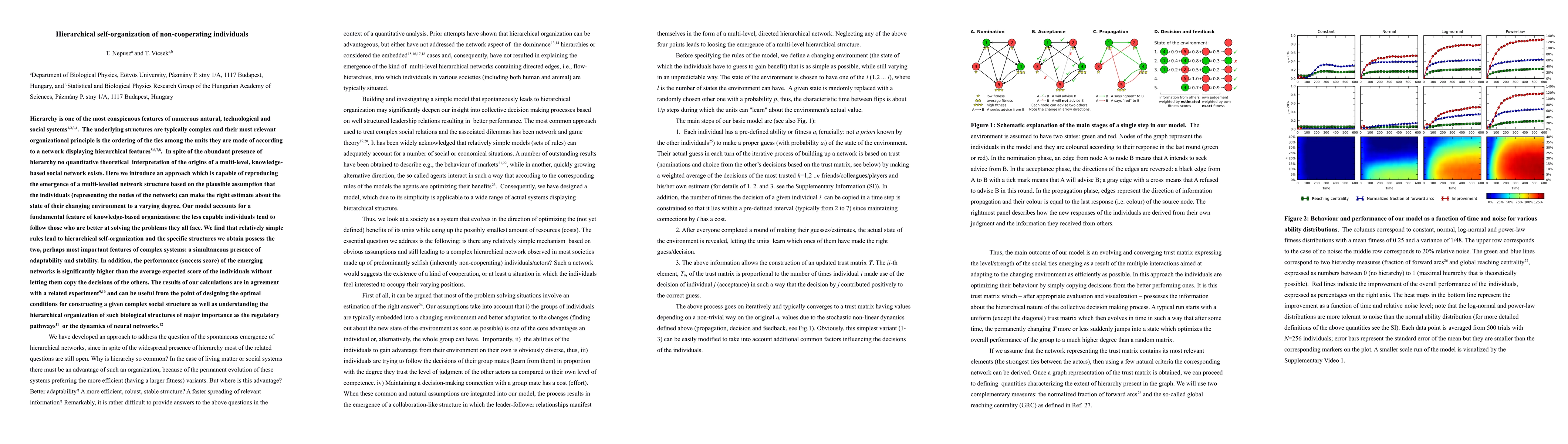 Hierarchy is one of the most conspicuous features of numerous natural, technological and social systems. The underlying structures are typically complex and their most relevant organizational principle is the ordering of the ties among the units they are made of according to a network displaying hierarchical features. In spite of the abundant presence of hierarchy no quantitative theoretical interpretation of the origins of a multi-level, knowledge-based social network exists. Here we introduce an approach which is capable of reproducing the emergence of a multi-levelled network structure based on the plausible assumption that the individuals (representing the nodes of the network) can make the right estimate about the state of their changing environment to a varying degree. Our model accounts for a fundamental feature of knowledge-based organizations: the less capable individuals tend to follow those who are better at solving the problems they all face. We find that relatively simple rules lead to hierarchical self-organization and the specific structures we obtain possess the two, perhaps most important features of complex systems: a simultaneous presence of adaptability and stability. In addition, the performance (success score) of the emerging networks is significantly higher than the average expected score of the individuals without letting them copy the decisions of the others. The results of our calculations are in agreement with a related experiment and can be useful from the point of designing the optimal conditions for constructing a given complex social structure as well as understanding the hierarchical organization of such biological structures of major importance as the regulatory pathways or the dynamics of neural networks.