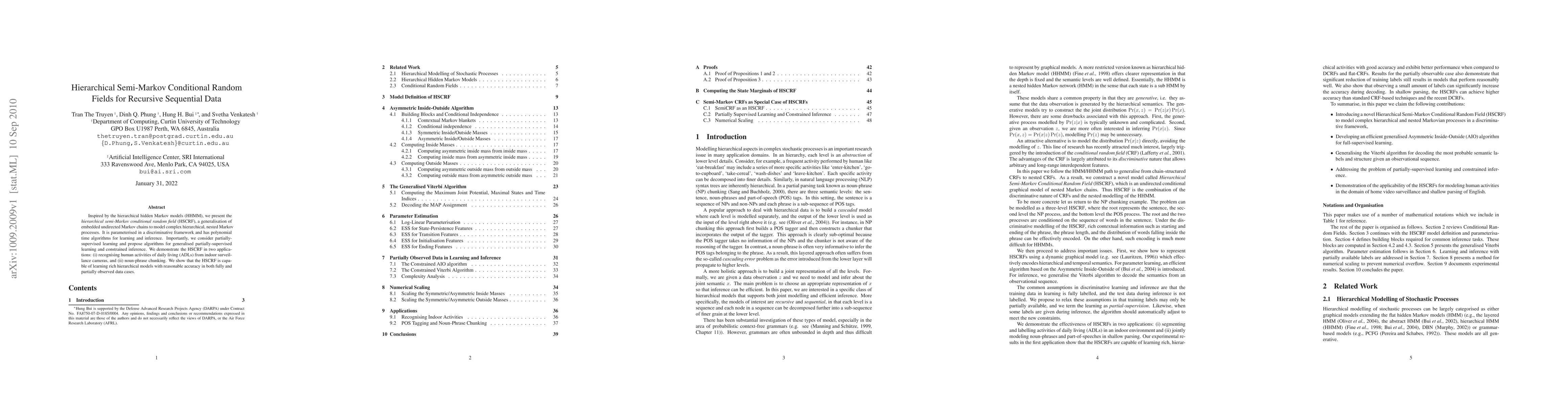 This research paper introduces the Hierarchical Semi-Markov Conditional Random Field (HSCRF), a model for complex hierarchical data that can learn accurate models with polynomial time algorithms.