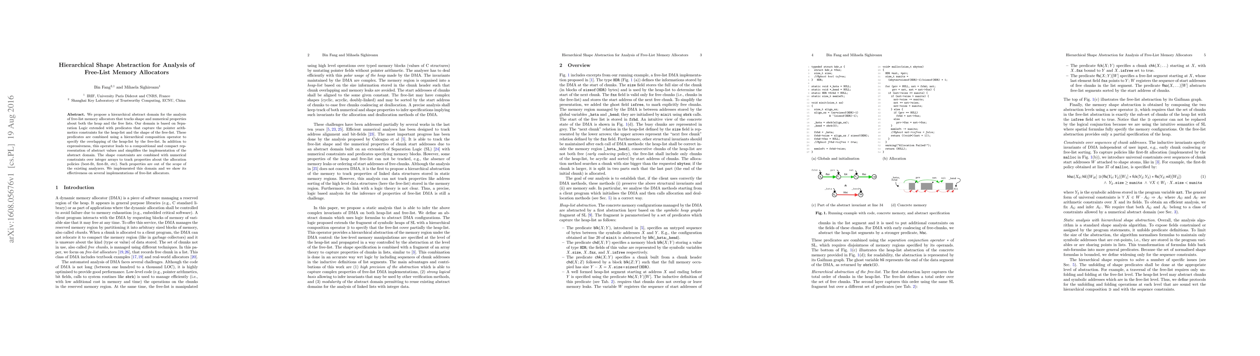 Researchers proposed a hierarchical shape abstraction for analyzing free-list memory allocators, allowing for more expressive analysis of heap and free list properties. Their domain improves compositional representation and simplifies implementation, showcasing effectiveness on various allocator implementations.