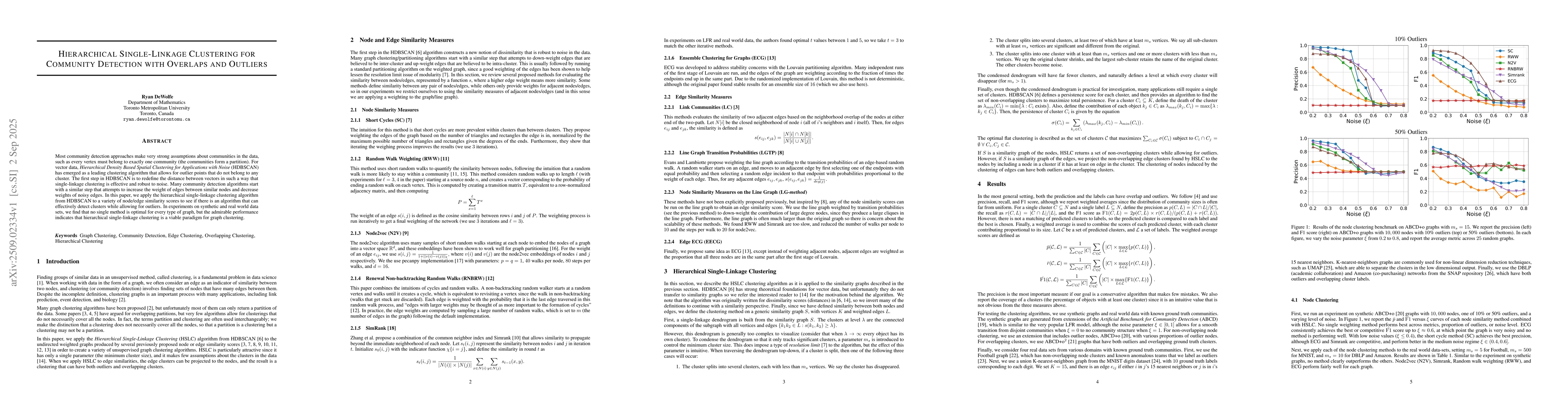 Most community detection approaches make very strong assumptions about communities in the data, such as every vertex must belong to exactly one community (the communities form a partition). For vector data, Hierarchical Density Based Spatial Clustering for Applications with Noise (HDBSCAN) has emerged as a leading clustering algorithm that allows for outlier points that do not belong to any cluster. The first step in HDBSCAN is to redefine the distance between vectors in such a way that single-linkage clustering is effective and robust to noise. Many community detection algorithms start with a similar step that attempts to increase the weight of edges between similar nodes and decrease weights of noisy edges. In this paper, we apply the hierarchical single-linkage clustering algorithm from HDBSCAN to a variety of node/edge similarity scores to see if there is an algorithm that can effectively detect clusters while allowing for outliers. In experiments on synthetic and real world data sets, we find that no single method is optimal for every type of graph, but the admirable performance indicates that hierarchical single-linkage clustering is a viable paradigm for graph clustering.