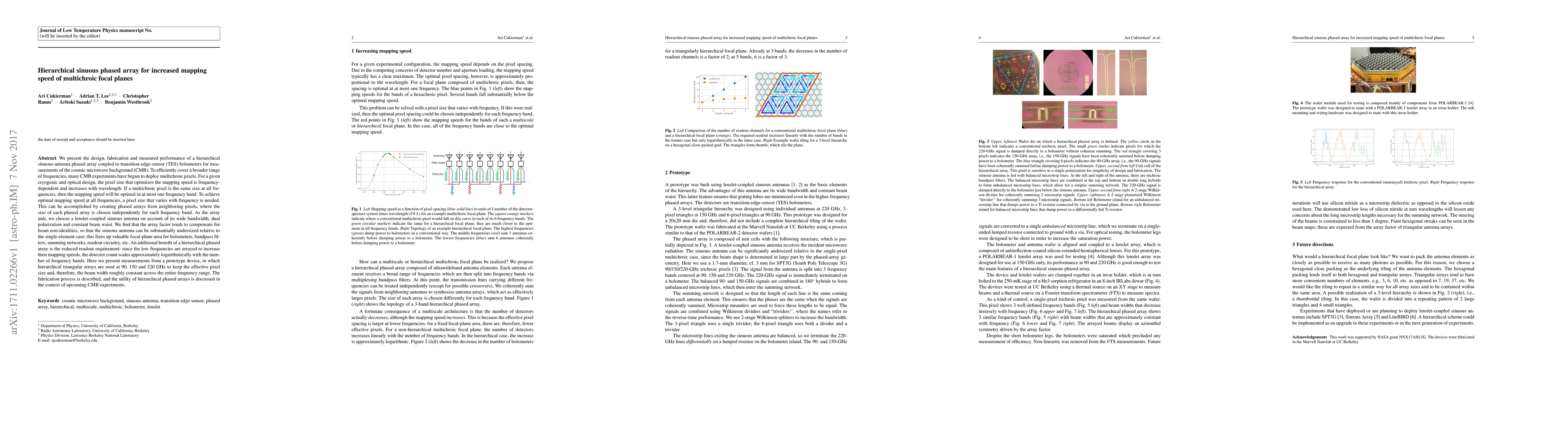 This paper details the design and performance of a hierarchical sinuous phased array for multichroic focal planes, optimizing mapping speed for cosmic microwave background measurements. The array uses lenslet-coupled sinuous antennas to maintain constant beam width across different frequencies, reducing the effective pixel size and enabling efficient use of focal-plane area.