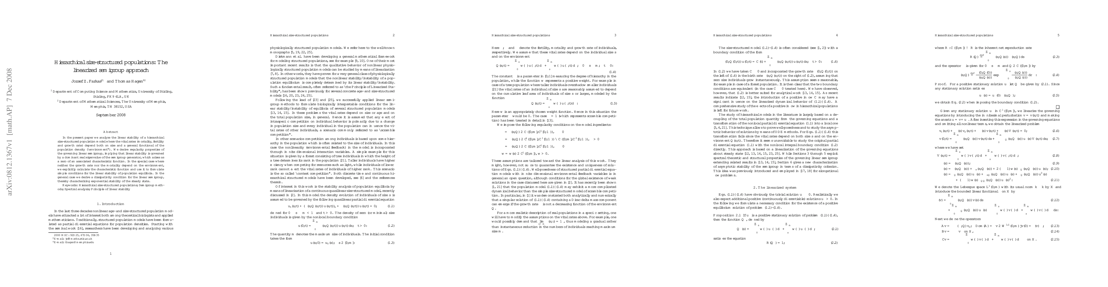 This paper investigates the linear stability of hierarchical size-structured population models, deriving regularity properties of the linear semigroup. It finds that stability is governed by a dominant eigenvalue, and provides explicit conditions for stability when growth and mortality are independent of environmental factors.