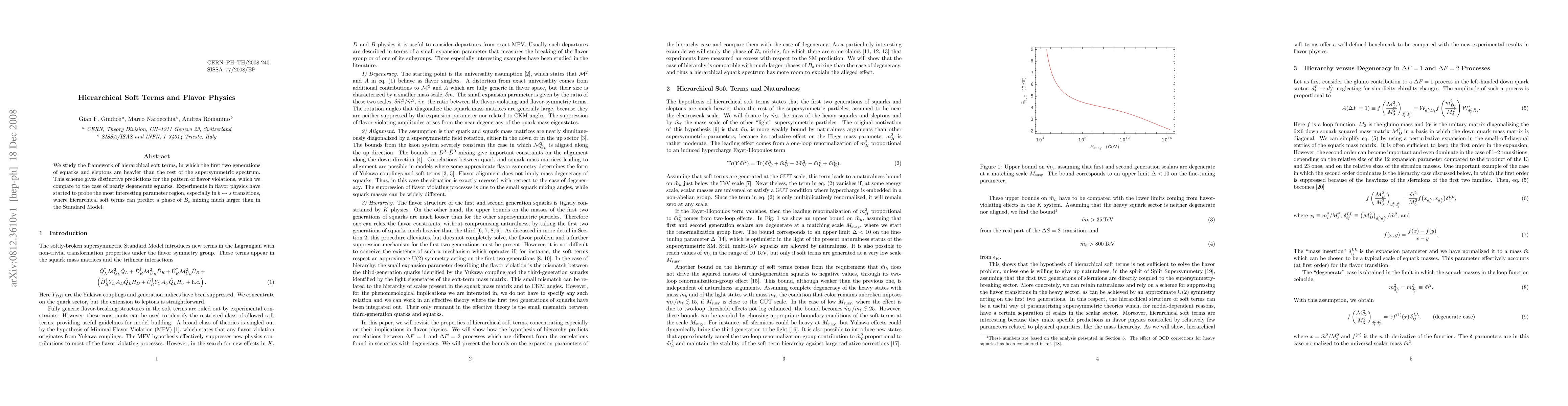 This paper explores the implications of hierarchical soft terms in supersymmetry, where the first two generations of squarks and sleptons are heavier than the rest, leading to unique predictions for flavor violation patterns. It compares these predictions to those of nearly degenerate squarks and highlights the potential for significant enhancements in $B_s$ mixing phases.