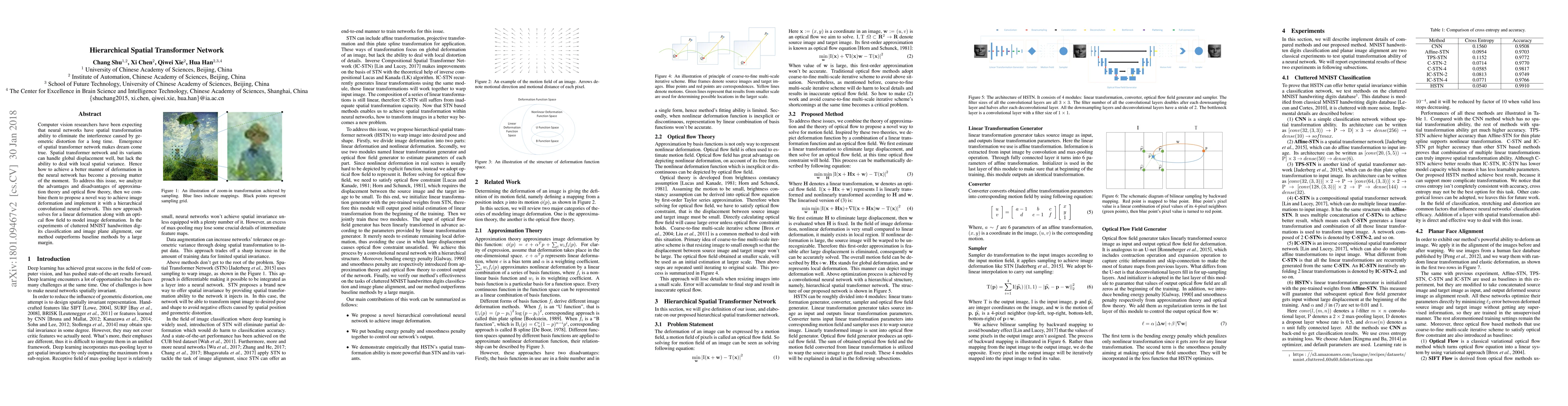 A new neural network approach uses a hierarchical spatial transformer to solve for linear deformation along with an optical flow field, outperforming baseline methods in cluttered handwritten digits classification and image plane alignment tasks.