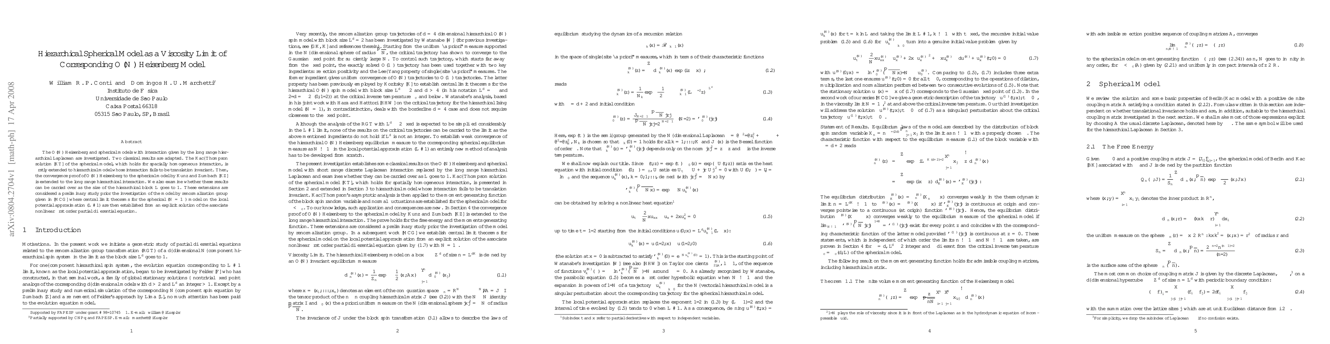 The O(N) Heisenberg and spherical models with interaction given by the long range hierarchical Laplacean are investigated. Two classical results are adapted. The Kac--Thompson solution [KT] of the spherical model, which holds for spacially homogeneous interaction, is firstly extended to hierarchical model whose interaction fails to be translation invariant. Then, the convergence proof of O(N) Heisenberg to the spherical model by Kunz and Zumbach [KZ] is extended to the long range hierarchical interaction. We also examine whether these results can be carried over as the size of the hierarchical block L goes to 1. These extensions are considered a preliminary study prior the investigation of the model by renormalization group given in [MCG] where central limit theorems for the spherical (N=\infty) model on the local potential approximation (L\downarrow 1) are then established from an explicit solution of the associate nonlinear first order partial differential equation.