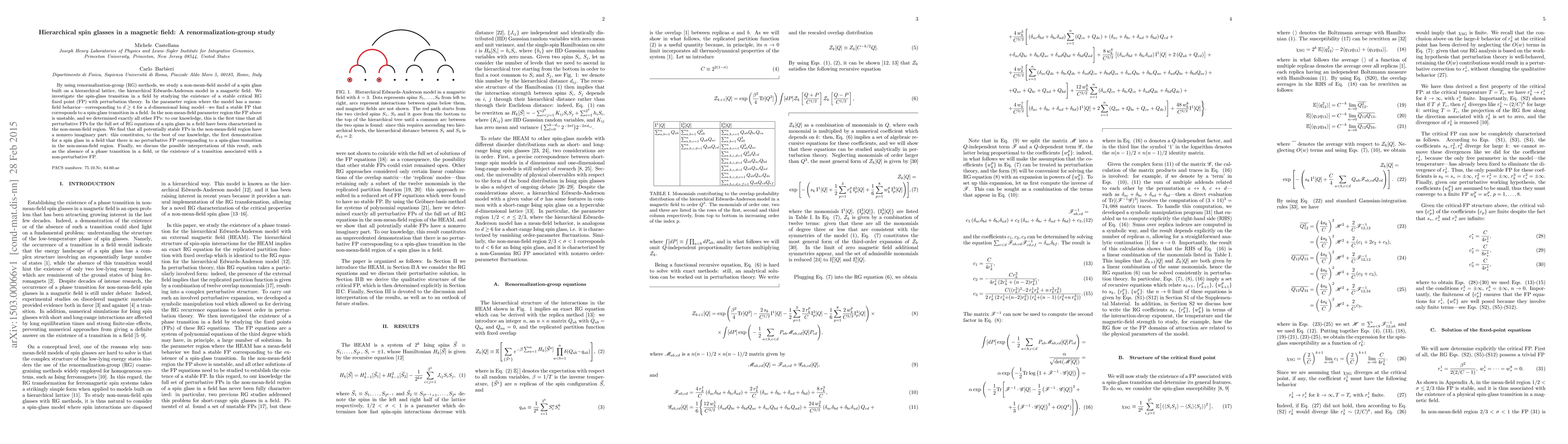 This paper uses renormalization-group methods to study a hierarchical spin glass model in a magnetic field, finding a stable critical fixed point in mean-field regions but no stable perturbative fixed points in non-mean-field regions, suggesting no spin-glass transition in the latter.