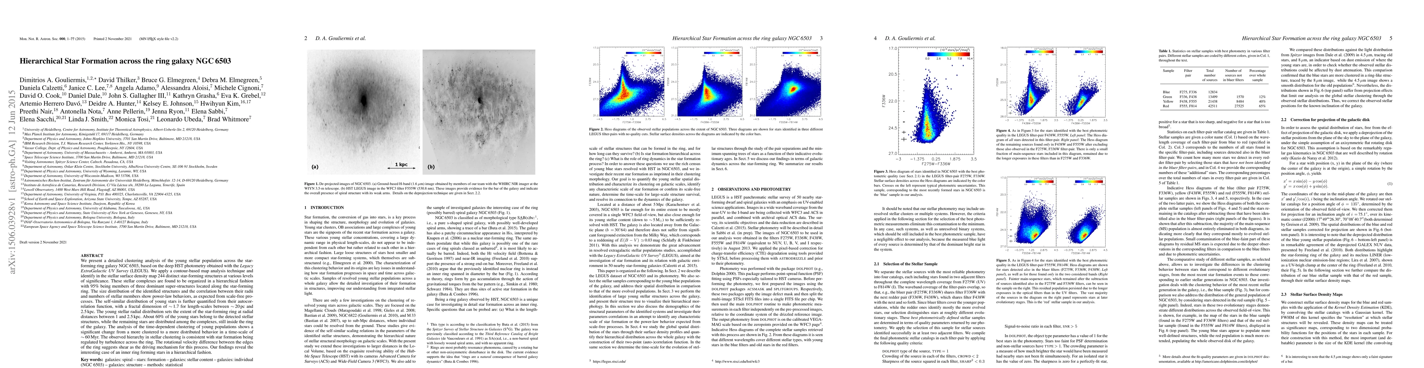 We present a detailed clustering analysis of the young stellar population across the star-forming ring galaxy NGC 6503, based on the deep HST photometry obtained with the Legacy ExtraGalactic UV Survey (LEGUS). We apply a contour-based map analysis technique and identify in the stellar surface density map 244 distinct star-forming structures at various levels of significance. These stellar complexes are found to be organized in a hierarchical fashion with 95% being members of three dominant super-structures located along the star-forming ring. The size distribution of the identified structures and the correlation between their radii and numbers of stellar members show power-law behaviors, as expected from scale-free processes. The self-similar distribution of young stars is further quantified from their autocorrelation function, with a fractal dimension of ~1.7 for length-scales between ~20 pc and 2.5 kpc. The young stellar radial distribution sets the extent of the star-forming ring at radial distances between 1 and 2.5 kpc. About 60% of the young stars belong to the detected stellar structures, while the remaining stars are distributed among the complexes, still inside the ring of the galaxy. The analysis of the time-dependent clustering of young populations shows a significant change from a more clustered to a more distributed behavior in a time-scale of ~60 Myr. The observed hierarchy in stellar clustering is consistent with star formation being regulated by turbulence across the ring. The rotational velocity difference between the edges of the ring suggests shear as the driving mechanism for this process. Our findings reveal the interesting case of an inner ring forming stars in a hierarchical fashion.