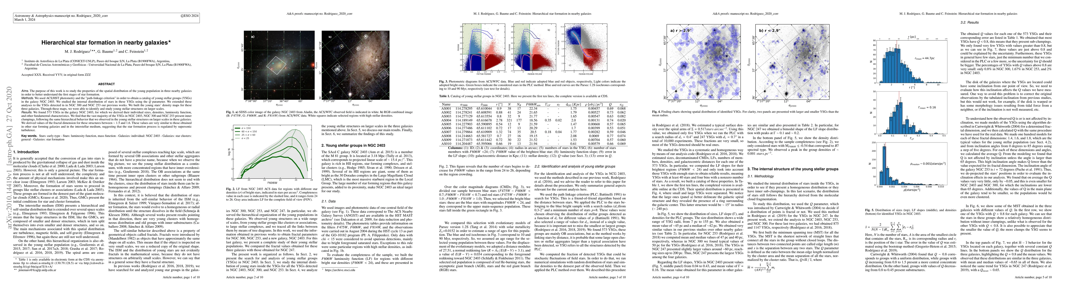 This study investigates hierarchical star formation in nearby galaxies, revealing that young stellar groups exhibit clumpings and fractal structures similar to those observed on larger scales, suggesting a regulated star formation process via supersonic turbulence.