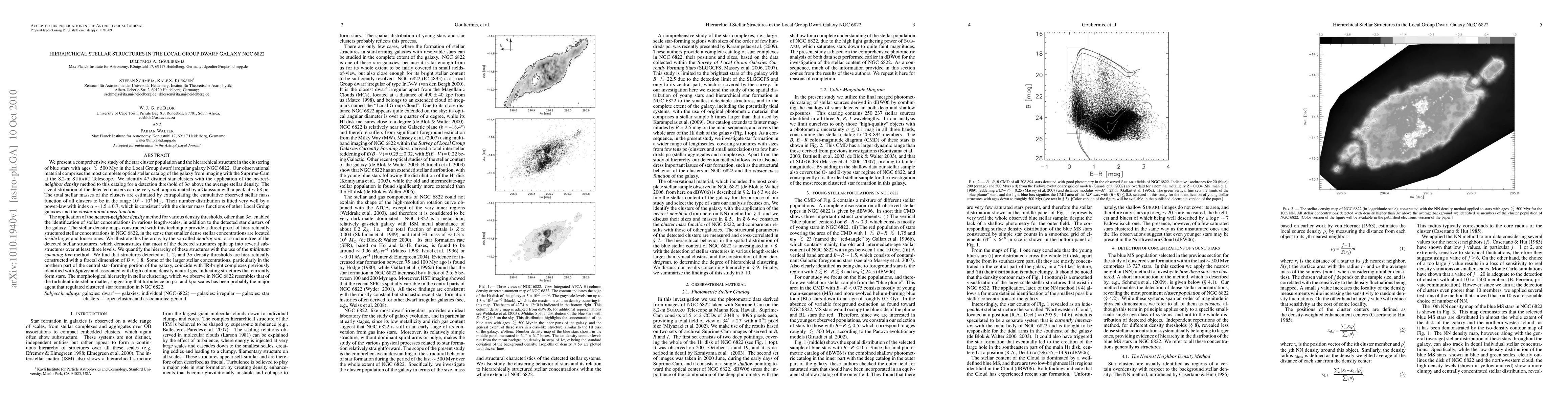 This paper investigates the hierarchical structure of star clusters in the Local Group dwarf galaxy NGC 6822 using optical data from the SUBARU Telescope. The study identifies 47 distinct star clusters and reveals a hierarchical organization of stellar concentrations, suggesting turbulence as a major factor in star formation regulation.