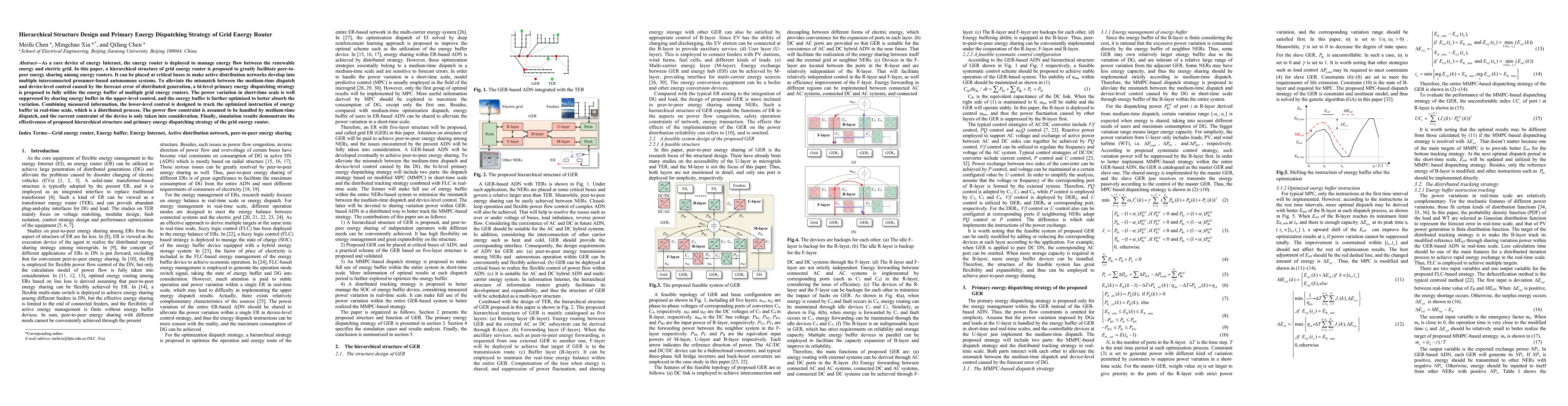 A hierarchical structure design for grid energy routers is proposed to enable peer-to-peer energy sharing and a primary energy dispatching strategy to alleviate forecast errors in distributed generation.