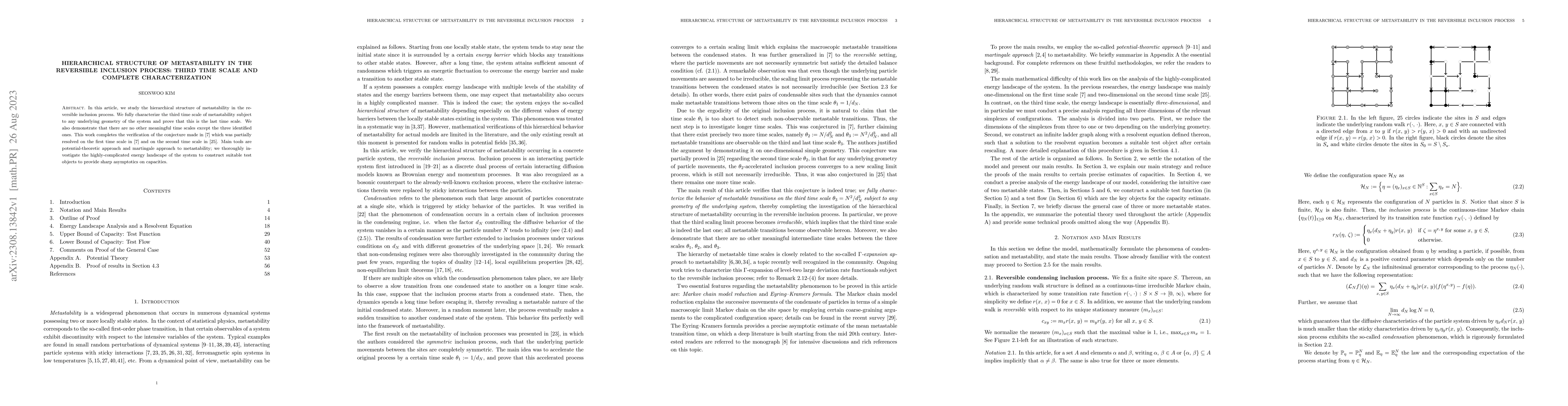 In this article, we study the hierarchical structure of metastability in the reversible inclusion process. We fully characterize the third time scale of metastability subject to any underlying geometry of the system and prove that this is the last time scale. We also demonstrate that there are no other meaningful time scales except the three identified ones. This work completes the verification of the conjecture made in [7] which was partially resolved on the first time scale in [7] and on the second time scale in [25]. Main tools are potential-theoretic approach and martingale approach to metastability; we thoroughly investigate the highly-complicated energy landscape of the system to construct suitable test objects to provide sharp asymptotics on capacities.