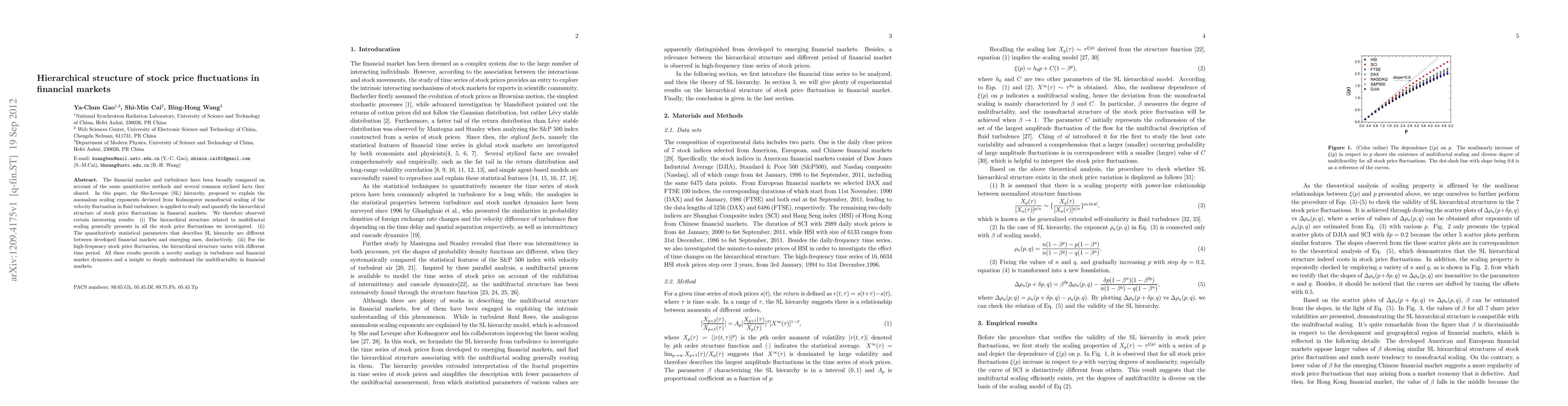 The research applies the She-Leveque (SL) hierarchy to study the hierarchical structure of stock price fluctuations in financial markets, using scaling properties and extended self-similarity.