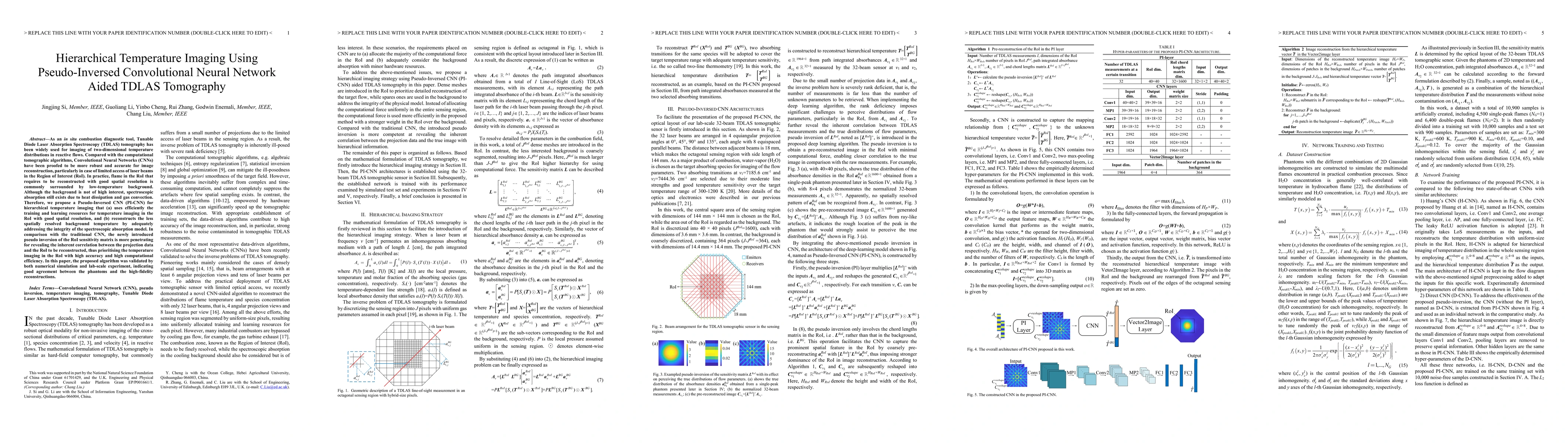 As an in situ combustion diagnostic tool, Tunable Diode Laser Absorption Spectroscopy (TDLAS) tomography has been widely used for imaging of two-dimensional temperature distributions in reactive flows. Compared with the computational tomographic algorithms, Convolutional Neural Networks (CNNs) have been proofed to be more robust and accurate for image reconstruction, particularly in case of limited access of laser beams in the Region of Interest (RoI). In practice, flame in the RoI that requires to be reconstructed with good spatial resolution is commonly surrounded by low-temperature background. Although the background is not of high interest, spectroscopic absorption still exists due to heat dissipation and gas convection. Therefore, we propose a Pseudo-Inversed CNN (PI-CNN) for hierarchical temperature imaging that (a) uses efficiently the training and learning resources for temperature imaging in the RoI with good spatial resolution, and (b) reconstructs the less spatially resolved background temperature by adequately addressing the integrity of the spectroscopic absorption model. In comparison with the traditional CNN, the newly introduced pseudo inversion of the RoI sensitivity matrix is more penetrating for revealing the inherent correlation between the projection data and the RoI to be reconstructed, thus prioritising the temperature imaging in the RoI with high accuracy and high computational efficiency. In this paper, the proposed algorithm was validated by both numerical simulation and lab-scale experiment, indicating good agreement between the phantoms and the high-fidelity reconstructions.