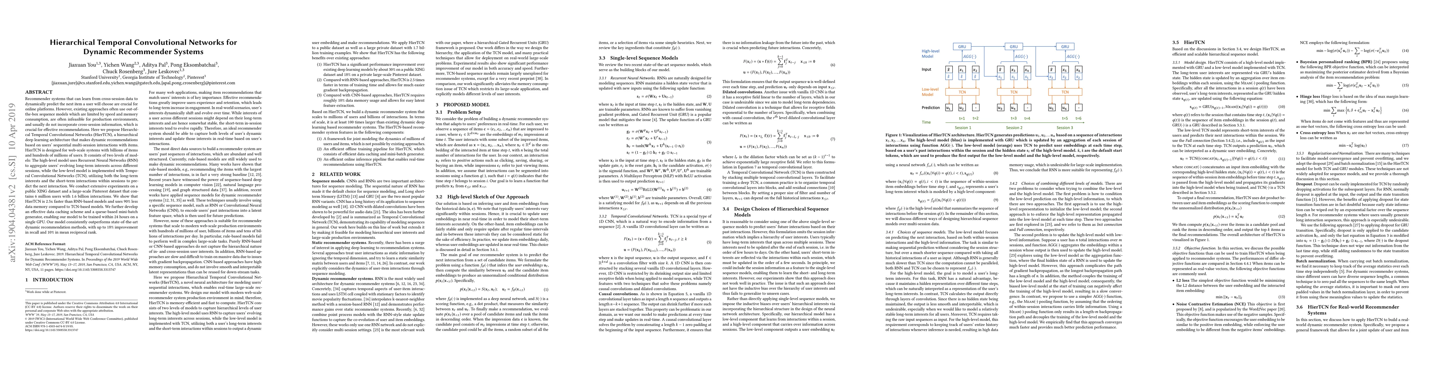 Recommender systems that can learn from cross-session data to dynamically predict the next item a user will choose are crucial for online platforms. However, existing approaches often use out-of-the-box sequence models which are limited by speed and memory consumption, are often infeasible for production environments, and usually do not incorporate cross-session information, which is crucial for effective recommendations. Here we propose Hierarchical Temporal Convolutional Networks (HierTCN), a hierarchical deep learning architecture that makes dynamic recommendations based on users' sequential multi-session interactions with items. HierTCN is designed for web-scale systems with billions of items and hundreds of millions of users. It consists of two levels of models: The high-level model uses Recurrent Neural Networks (RNN) to aggregate users' evolving long-term interests across different sessions, while the low-level model is implemented with Temporal Convolutional Networks (TCN), utilizing both the long-term interests and the short-term interactions within sessions to predict the next interaction. We conduct extensive experiments on a public XING dataset and a large-scale Pinterest dataset that contains 6 million users with 1.6 billion interactions. We show that HierTCN is 2.5x faster than RNN-based models and uses 90% less data memory compared to TCN-based models. We further develop an effective data caching scheme and a queue-based mini-batch generator, enabling our model to be trained within 24 hours on a single GPU. Our model consistently outperforms state-of-the-art dynamic recommendation methods, with up to 18% improvement in recall and 10% in mean reciprocal rank.