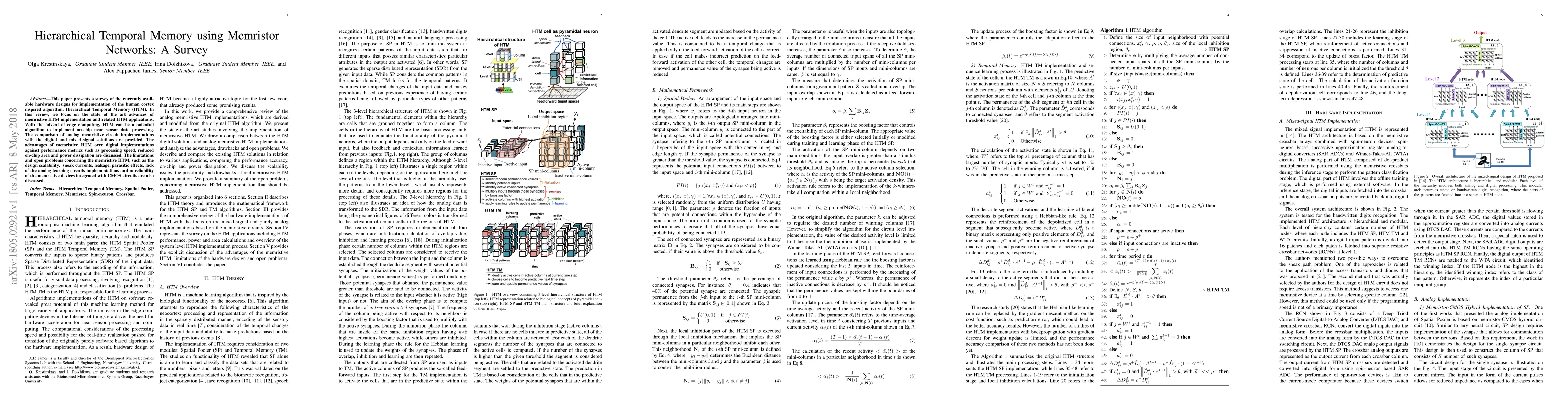 The paper provides a comprehensive survey of memristor-based HTM hardware implementations, comparing their performance, advantages, and limitations against digital and mixed-signal solutions.