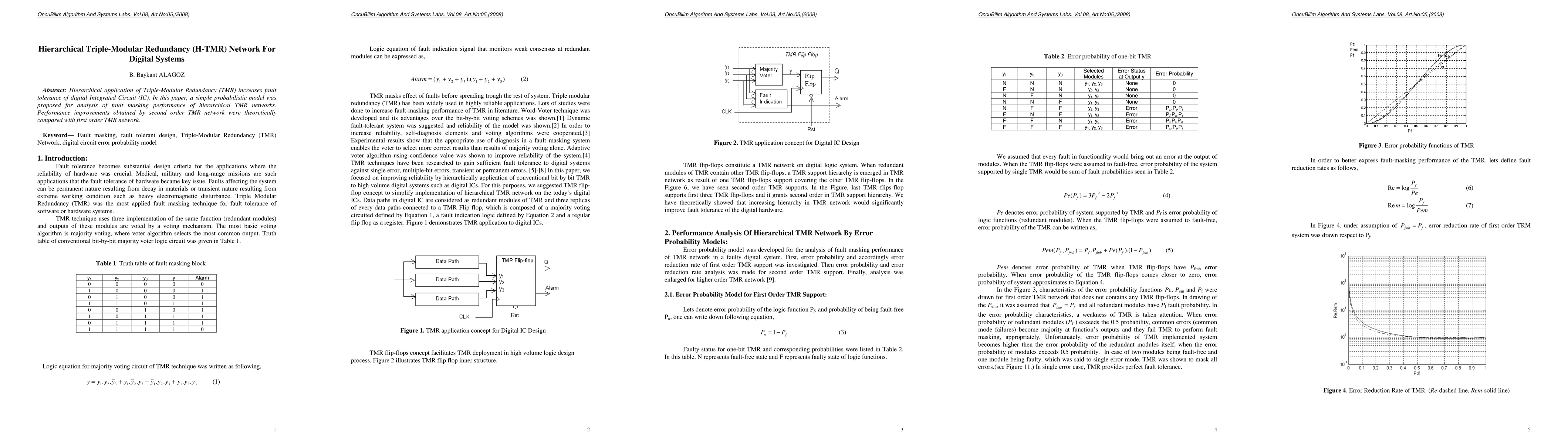 This paper proposes a probabilistic model to analyze the fault masking performance of hierarchical Triple-Modular Redundancy (H-TMR) networks, demonstrating that second-order TMR networks provide significant performance improvements over first-order TMR networks in enhancing fault tolerance for digital Integrated Circuits (ICs).