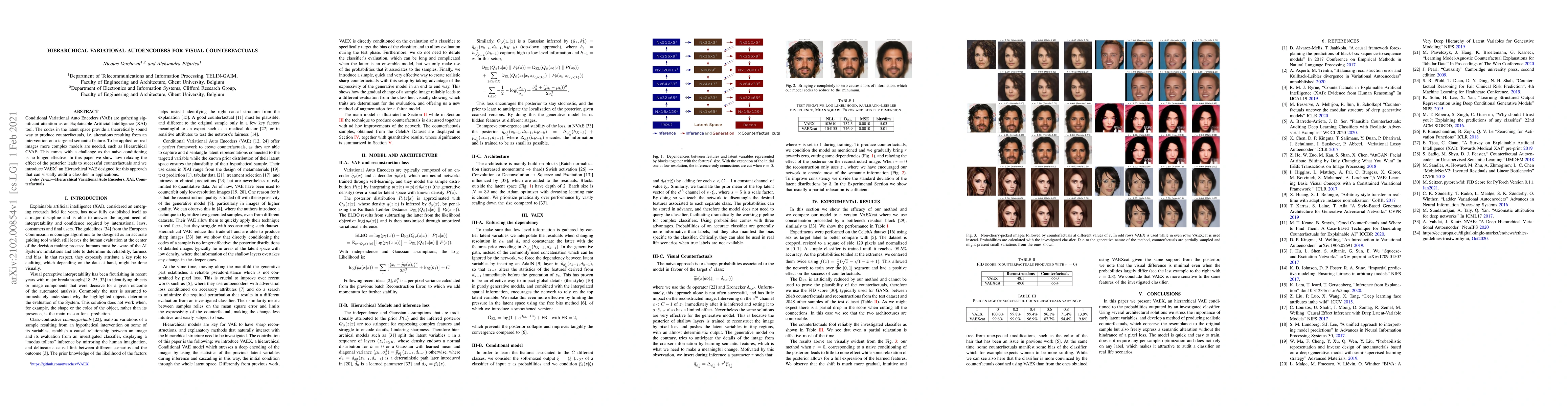 Conditional Variational Auto Encoders (VAE) are gathering significant attention as an Explainable Artificial Intelligence (XAI) tool. The codes in the latent space provide a theoretically sound way to produce counterfactuals, i.e. alterations resulting from an intervention on a targeted semantic feature. To be applied on real images more complex models are needed, such as Hierarchical CVAE. This comes with a challenge as the naive conditioning is no longer effective. In this paper we show how relaxing the effect of the posterior leads to successful counterfactuals and we introduce VAEX an Hierarchical VAE designed for this approach that can visually audit a classifier in applications.