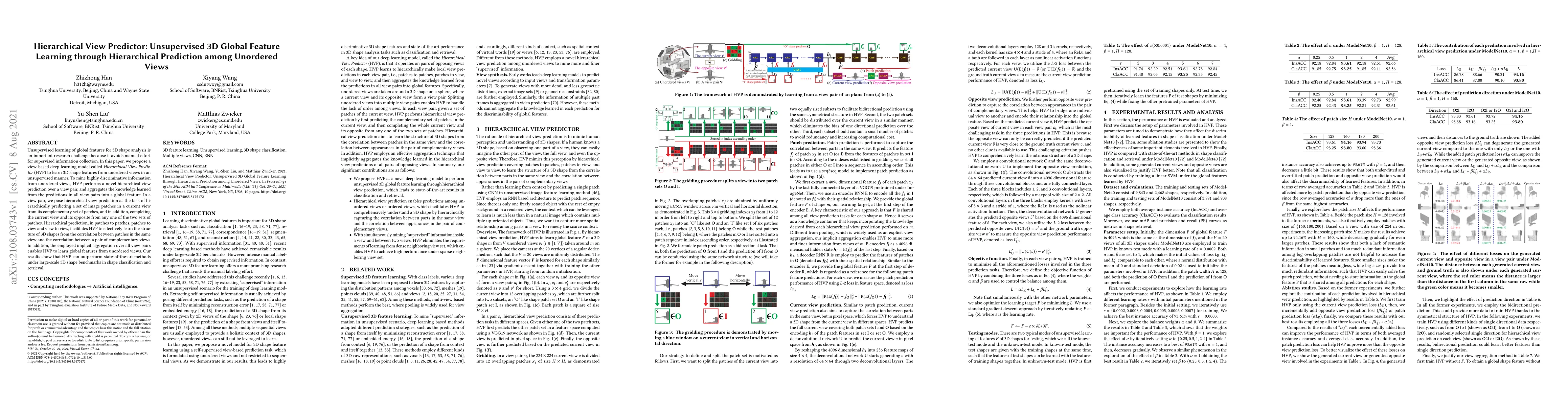 This paper proposes a Hierarchical View Predictor (HVP) model for unsupervised learning of 3D shape features from unordered views. HVP performs hierarchical view prediction to extract discriminative information and aggregate it into global features, outperforming state-of-the-art methods in 3D shape classification and retrieval.