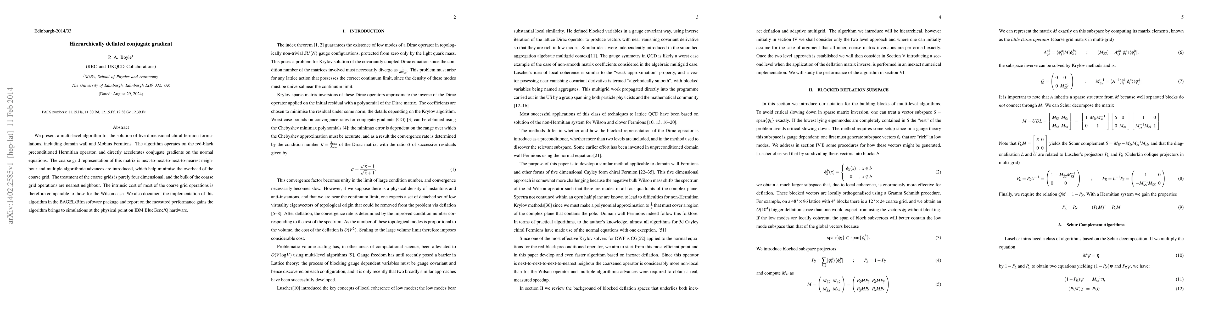 A new algorithm called Hierarchically deflated conjugate gradient is introduced for solving complex fermion formulations in physics simulations, achieving significant performance gains on IBM BlueGene/Q hardware.