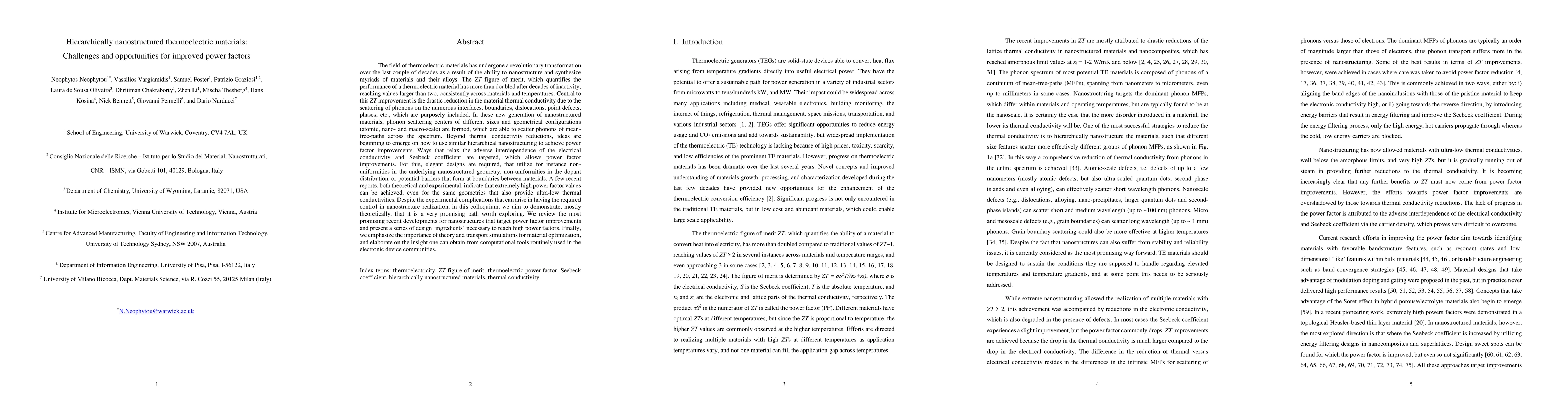 This paper discusses the revolutionary advancements in thermoelectric materials through hierarchical nanostructuring, which has significantly improved the ZT figure of merit by reducing thermal conductivity. It also explores the potential for further enhancements in the power factor through innovative nanostructuring designs, suggesting that this approach holds promising opportunities despite experimental challenges.