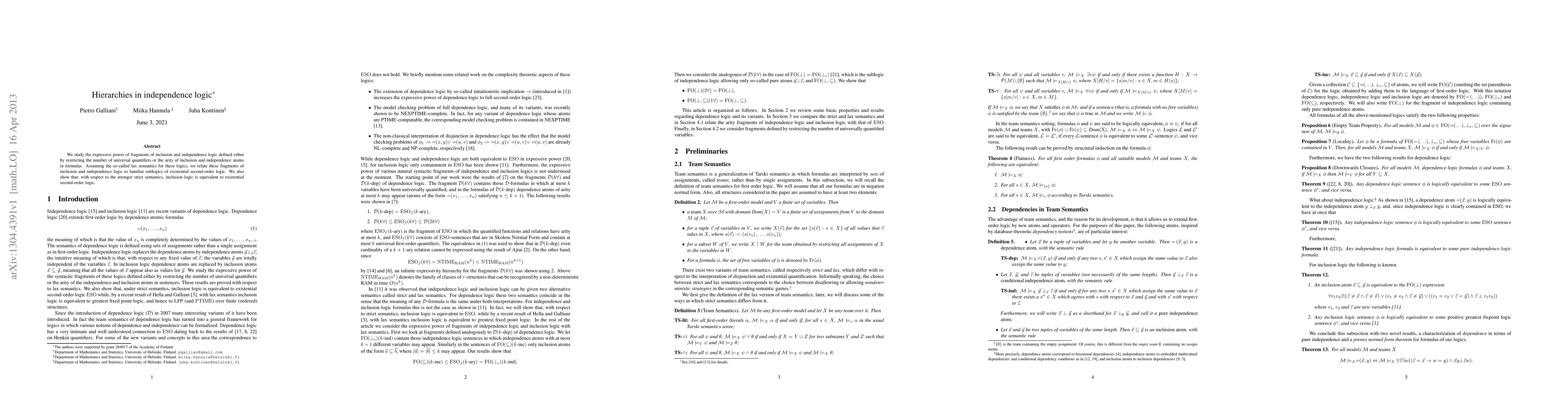 The work extends previous research on dependence logic hierarchies to inclusion and independence logic, uncovering new relationships and collapses in the hierarchy under certain conditions.