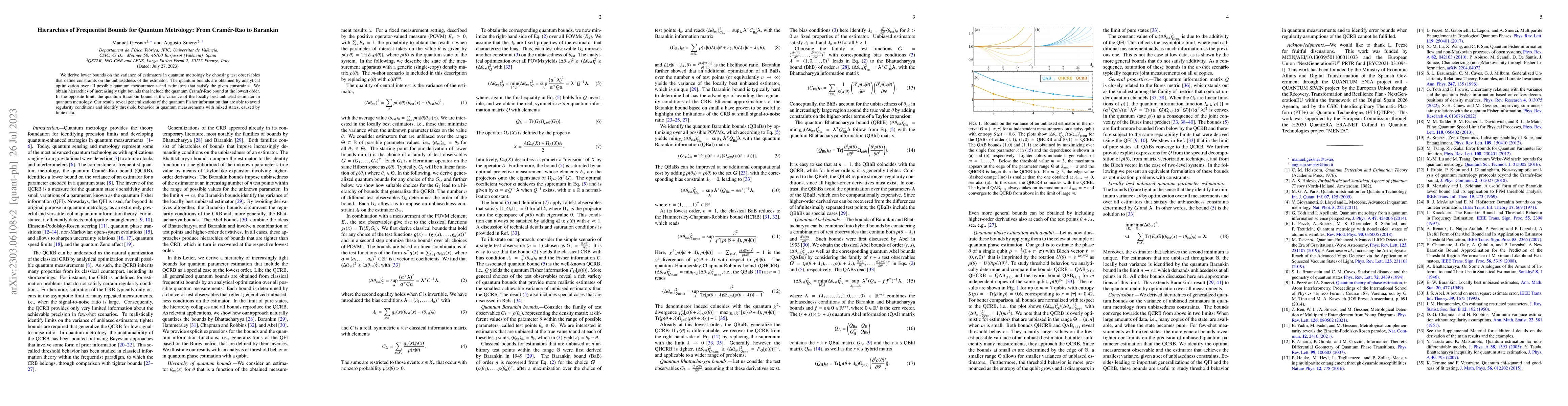 This paper derives a series of increasingly tight lower bounds on the variance of estimators in quantum metrology, starting from the quantum Cramér-Rao bound and culminating in the quantum Barankin bound. The bounds are obtained through analytical optimization over quantum measurements and estimators, revealing generalizations of the quantum Fisher information that account for mixed states and finite data effects.