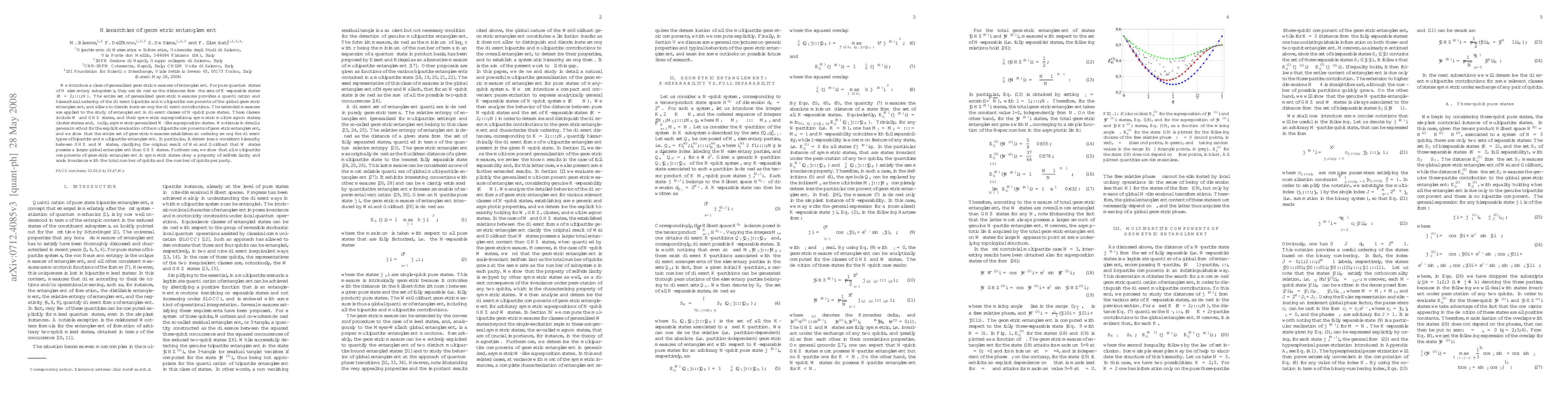 We introduce a class of generalized geometric measures of entanglement. For pure quantum states of $N$ elementary subsystems, they are defined as the distances from the sets of $K$-separable states ($K=2,...,N$). The entire set of generalized geometric measures provides a quantification and hierarchical ordering of the different bipartite and multipartite components of the global geometric entanglement, and allows to discriminate among the different contributions. The extended measures are applied to the study of entanglement in different classes of $N$-qubit pure states. These classes include $W$ and $GHZ$ states, and their symmetric superpositions; symmetric multi-magnon states; cluster states; and, finally, asymmetric generalized $W$-like superposition states. We discuss in detail a general method for the explicit evaluation of the multipartite components of geometric entanglement, and we show that the entire set of geometric measures establishes an ordering among the different types of bipartite and multipartite entanglement. In particular, it determines a consistent hierarchy between $GHZ$ and $W$ states, clarifying the original result of Wei and Goldbart that $W$ states possess a larger global entanglement than $GHZ$ states. Furthermore, we show that all multipartite components of geometric entanglement in symmetric states obey a property of self-similarity and scale invariance with the total number of qubits and the number of qubits per party.