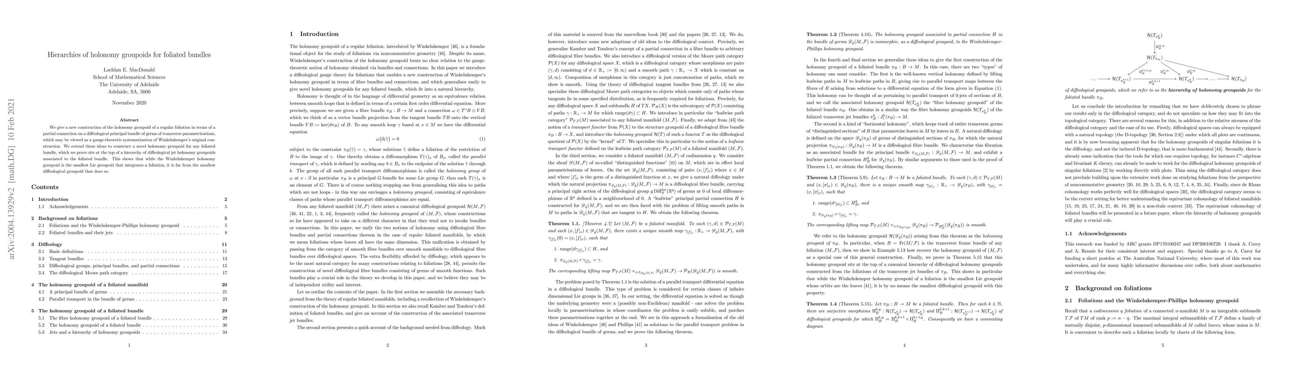 We give a new construction of the holonomy groupoid of a regular foliation in terms of a partial connection on a diffeological principal bundle of germs of transverse parametrisations. We extend these ideas to construct a novel holonomy groupoid for any foliated bundle, which we prove sits at the top of a hierarchy of diffeological jet holonomy groupoids associated to the foliated bundle.