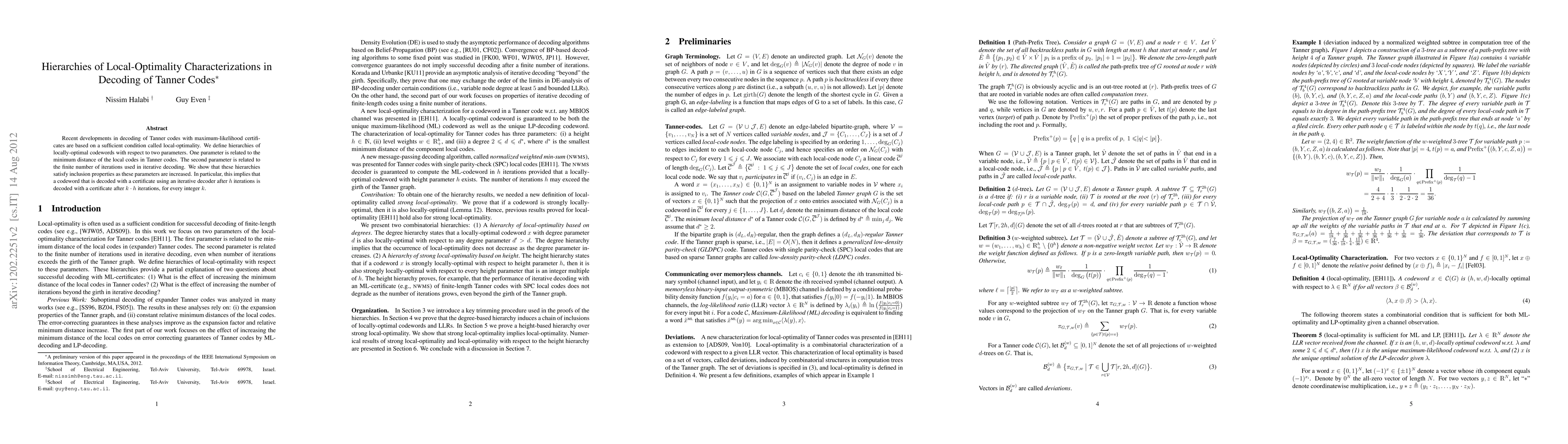 Recent developments in decoding of Tanner codes with maximum-likelihood certificates are based on a sufficient condition called local-optimality. We define hierarchies of locally-optimal codewords with respect to two parameters. One parameter is related to the minimum distance of the local codes in Tanner codes. The second parameter is related to the finite number of iterations used in iterative decoding. We show that these hierarchies satisfy inclusion properties as these parameters are increased. In particular, this implies that a codeword that is decoded with a certificate using an iterative decoder after $h$ iterations is decoded with a certificate after $k\cdot h$ iterations, for every integer $k$.