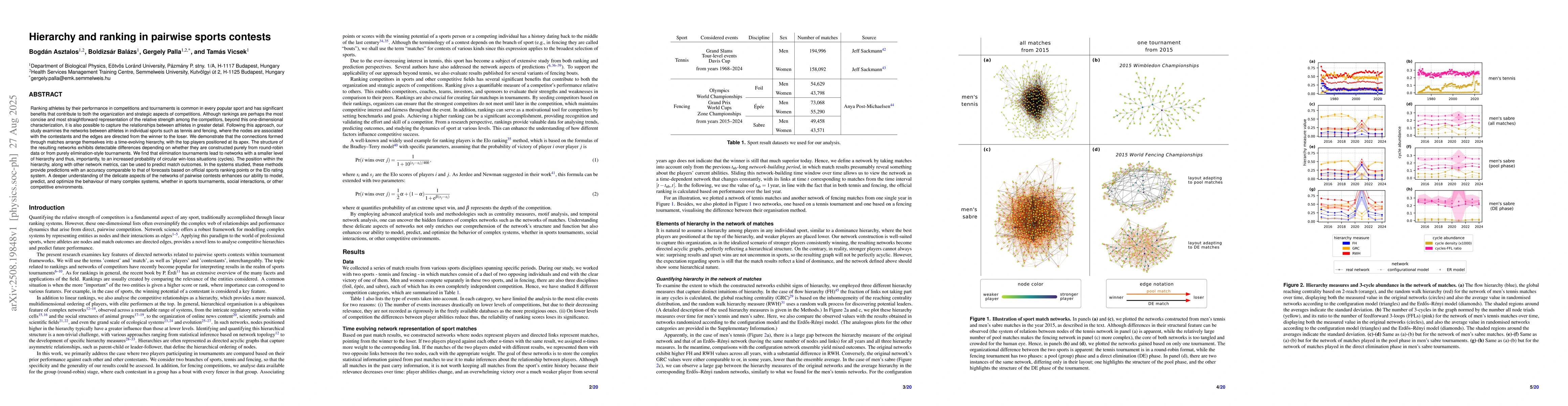 Ranking athletes by their performance in competitions and tournaments is common in every popular sport and has significant benefits that contribute to both the organization and strategic aspects of competitions. Although rankings are perhaps the most concise and most straightforward representation of the relative strength among the competitors, beyond this one-dimensional characterization, it is also possible to capture the relationships between athletes in greater detail. Following this approach, our study examines the networks between athletes in individual sports such as tennis and fencing, where the nodes are associated with the contestants and the edges are directed from the winner to the loser. We demonstrate that the connections formed through matches arrange themselves into a time-evolving hierarchy, with the top players positioned at its apex. The structure of the resulting networks exhibits detectable differences depending on whether they are constructed purely from round-robin data or from purely elimination-style tournaments. We find that elimination tournaments lead to networks with a smaller level of hierarchy and thus, importantly, to an increased probability of circular win-loss situations (cycles). The position within the hierarchy, along with other network metrics, can be used to predict match outcomes. In the systems studied, these methods provide predictions with an accuracy comparable to that of forecasts based on official sports ranking points or the Elo rating system. A deeper understanding of the delicate aspects of the networks of pairwise contests enhances our ability to model, predict, and optimize the behaviour of many complex systems, whether in sports tournaments, social interactions, or other competitive environments.