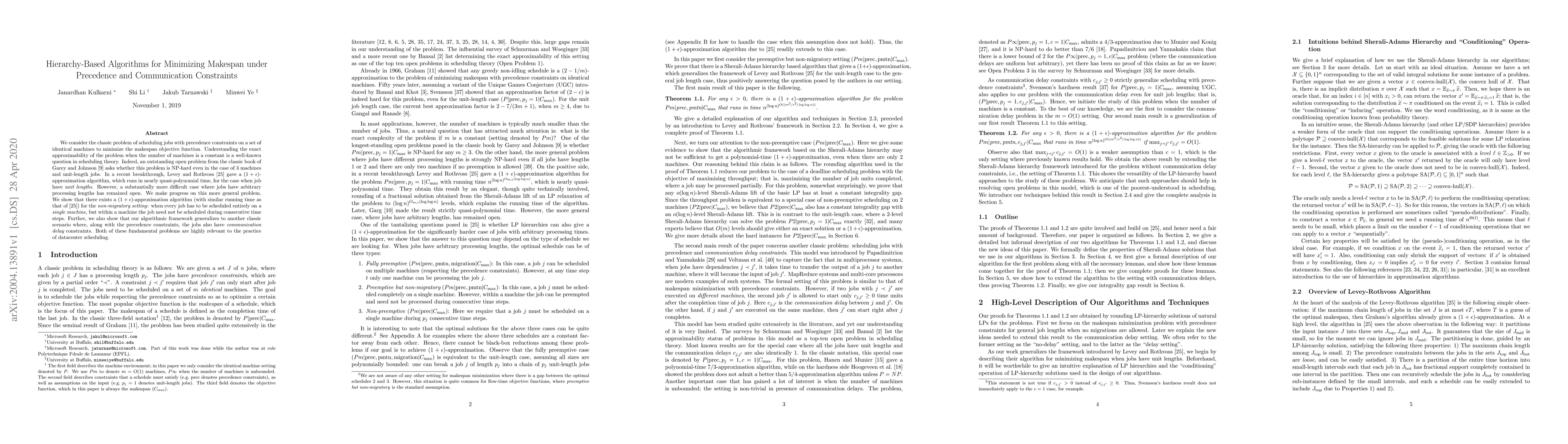We consider the classic problem of scheduling jobs with precedence constraints on a set of identical machines to minimize the makespan objective function. Understanding the exact approximability of the problem when the number of machines is a constant is a well-known question in scheduling theory. Indeed, an outstanding open problem from the classic book of Garey and Johnson asks whether this problem is NP-hard even in the case of 3 machines and unit-length jobs. In a recent breakthrough, Levey and Rothvoss gave a $(1+\epsilon)$-approximation algorithm, which runs in nearly quasi-polynomial time, for the case when job have unit lengths. However, a substantially more difficult case where jobs have arbitrary processing lengths has remained open. We make progress on this more general problem. We show that there exists a $(1+\epsilon)$-approximation algorithm (with similar running time as that of Levey and Rothvoss) for the non-migratory setting: when every job has to be scheduled entirely on a single machine, but within a machine the job need not be scheduled during consecutive time steps. Further, we also show that our algorithmic framework generalizes to another classic scenario where, along with the precedence constraints, the jobs also have communication delay constraints. Both of these fundamental problems are highly relevant to the practice of datacenter scheduling.