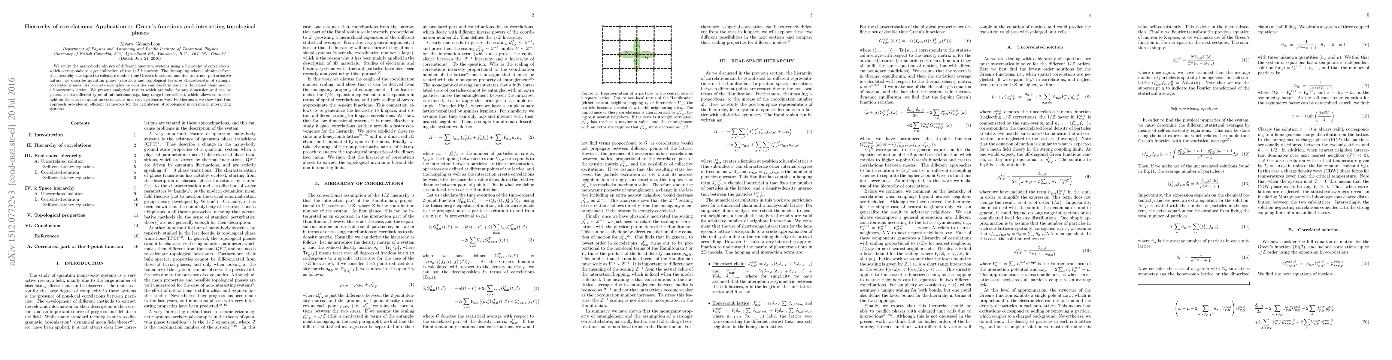 This paper introduces a new method to study quantum systems using a hierarchy of correlations, which helps describe quantum phase transitions and topological features in strongly correlated phases. It provides an efficient framework for calculating topological invariants in interacting systems.
