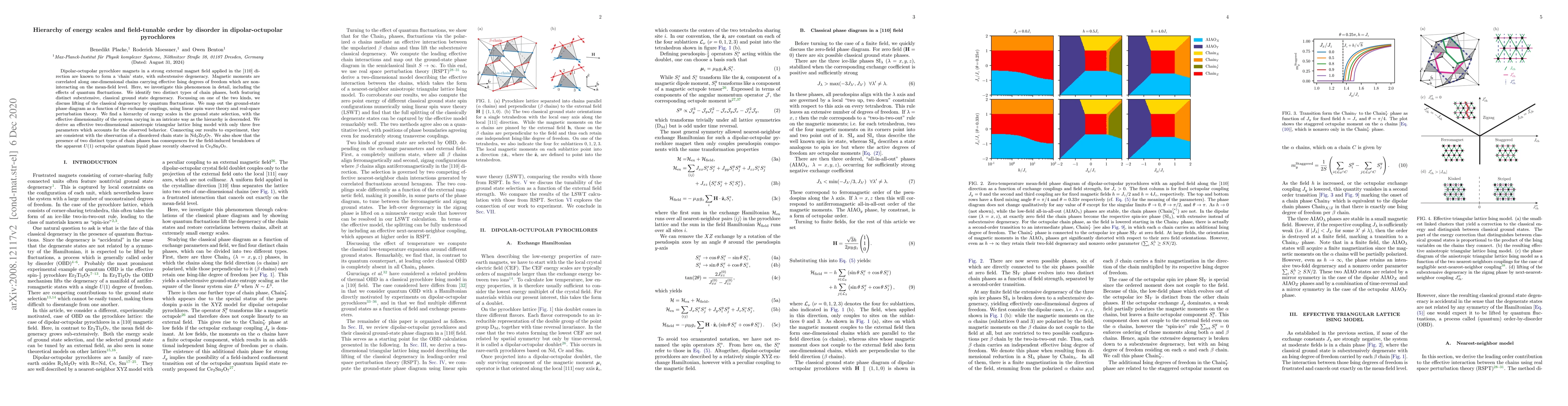 Dipolar-octupolar pyrochlore magnets in a strong external magnet field applied in the [110] direction are known to form a `chain' state, with subextensive degeneracy. Magnetic moments are correlated along one-dimensional chains carrying effective Ising degrees of freedom which are noninteracting on the mean-field level. Here, we investigate this phenomenon in detail, including the effects of quantum fluctuations. We identify two distinct types of chain phases, both featuring distinct subextensive, classical ground state degeneracy. Focussing on one of the two kinds, we discuss lifting of the classical degeneracy by quantum fluctuations. We map out the ground-state phase diagram as a function of the exchange couplings, using linear spin wave theory and real-space perturbation theory. We find a hierarchy of energy scales in the ground state selection, with the effective dimensionality of the system varying in an intricate way as the hierarchy is descended. We derive an effective two-dimensional anisotropic triangular lattice Ising model with only three free parameters which accounts for the observed behavior. Connecting our results to experiment, they are consistent with the observation of a disordered chain state in Nd$_2$Zr$_2$O$_7$. We also show that the presence of two distinct types of chain phases has consequences for the field-induced breakdown of the apparent $U(1)$ octupolar quantum liquid phase recently observed in Ce$_2$Sn$_2$O$_7$.