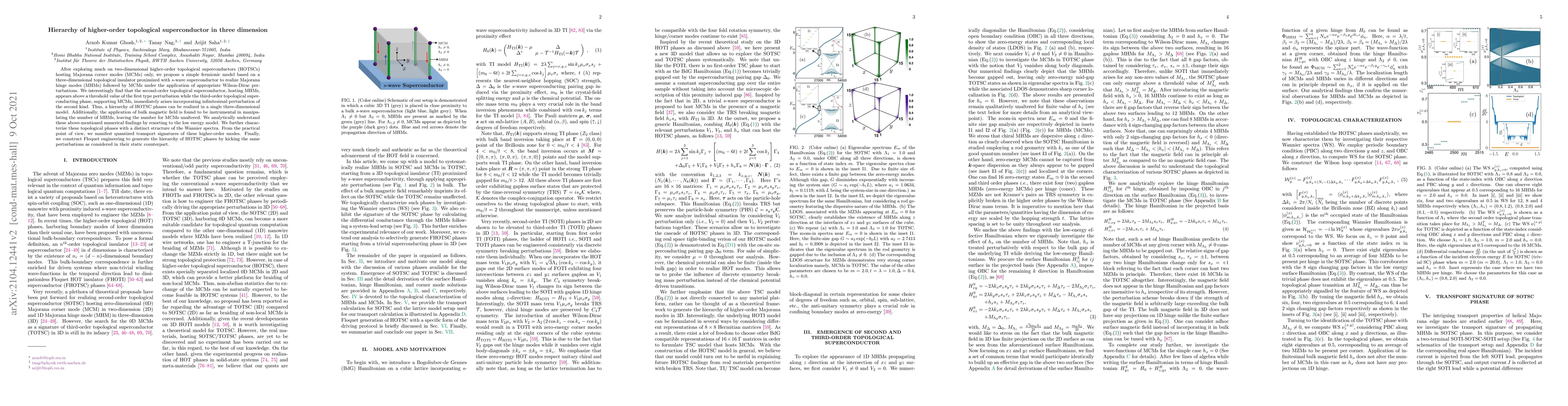 This paper proposes a three-dimensional fermionic model to realize a hierarchy of higher-order topological superconductor phases, including Majorana hinge modes and Majorana corner modes, through specific perturbations. It demonstrates the manipulation of these modes using bulk magnetic fields and quantizes their transport signatures.