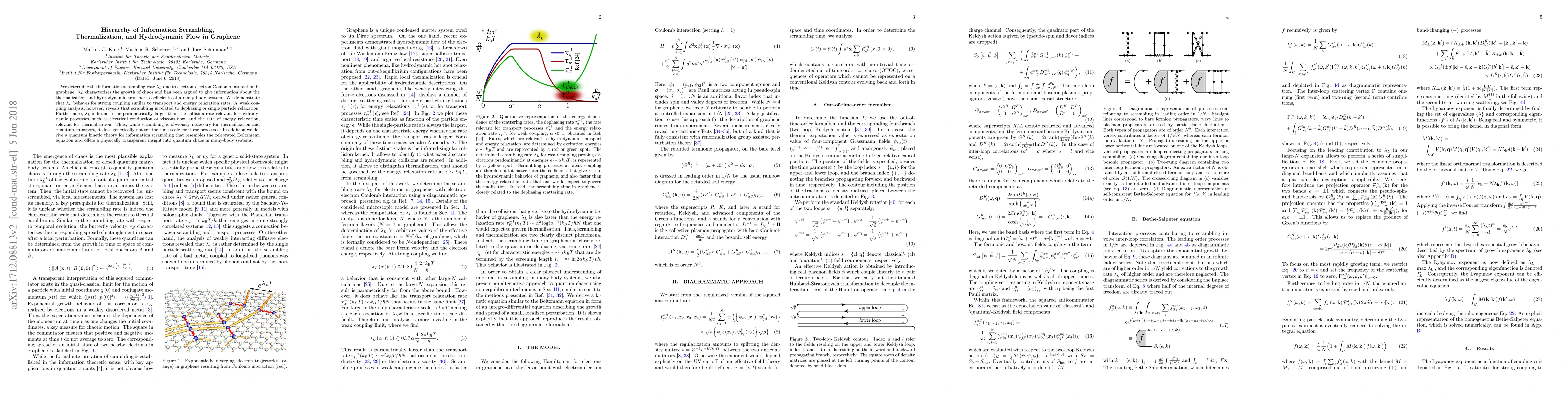 This research determines the information scrambling rate in graphene due to electron-electron interactions, finding it larger than hydrodynamic and thermalization rates. It reveals that scrambling is necessary for thermalization but does not set the time scale for these processes, offering a quantum kinetic theory akin to the Boltzmann equation for insight into quantum chaos.