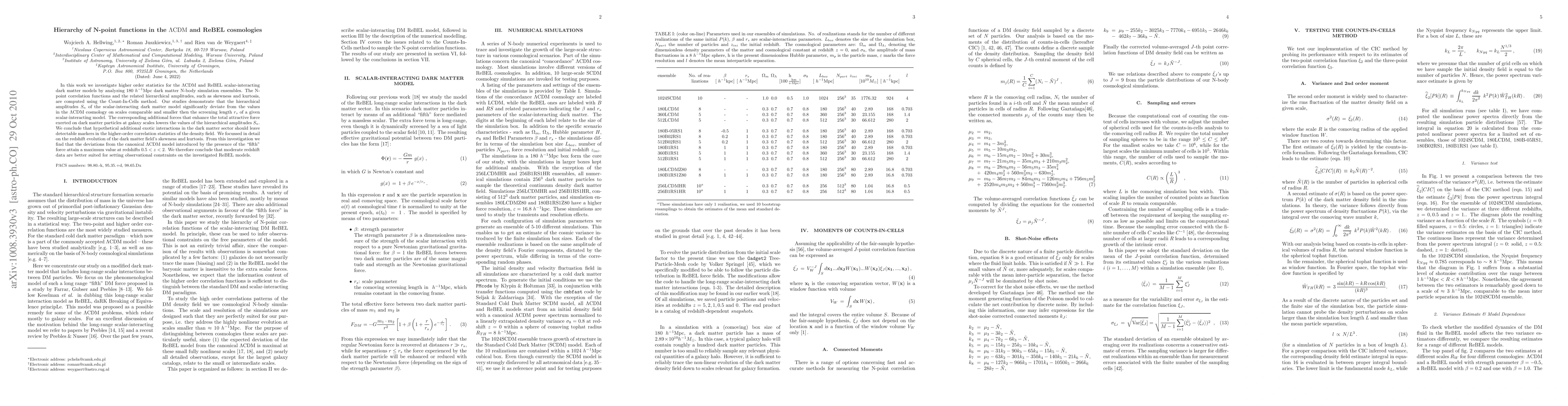 This paper examines higher-order statistics in the LCDM and ReBEL cosmologies using dark matter N-body simulations, finding significant deviations in hierarchical amplitudes for the ReBEL model. The study concludes that additional exotic interactions in dark matter can be detected through higher-order correlation statistics, with the most notable deviations occurring at redshifts 0.5 < z < 2.