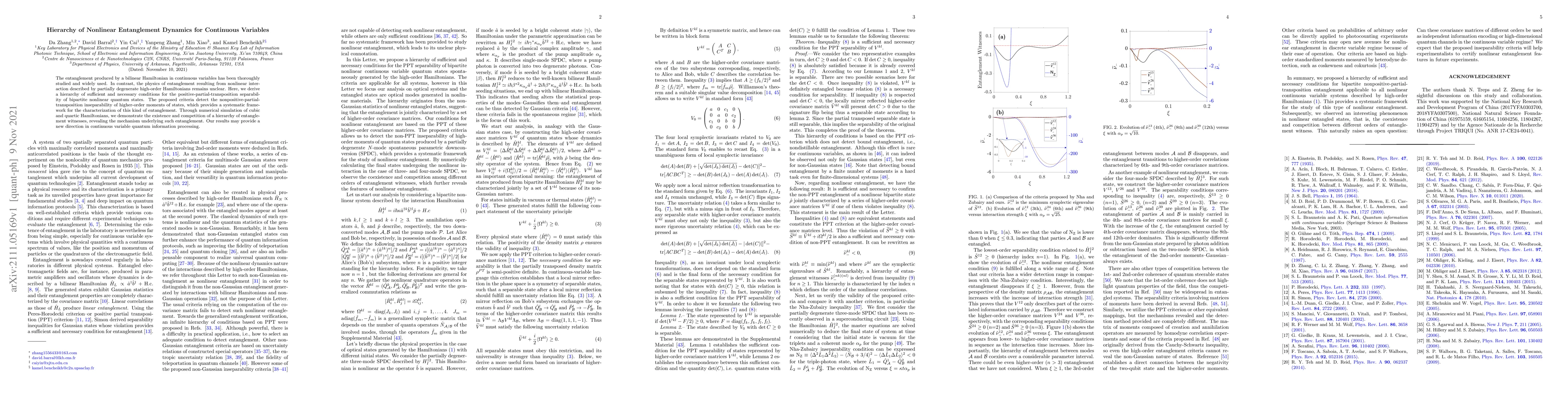 This paper develops a hierarchy of conditions to characterize nonlinear entanglement in continuous variable quantum states, derived from partially degenerate high-order Hamiltonians. It demonstrates the existence of entanglement witnesses through numerical simulations of cubic and quartic Hamiltonians, offering a systematic framework for understanding this type of entanglement.