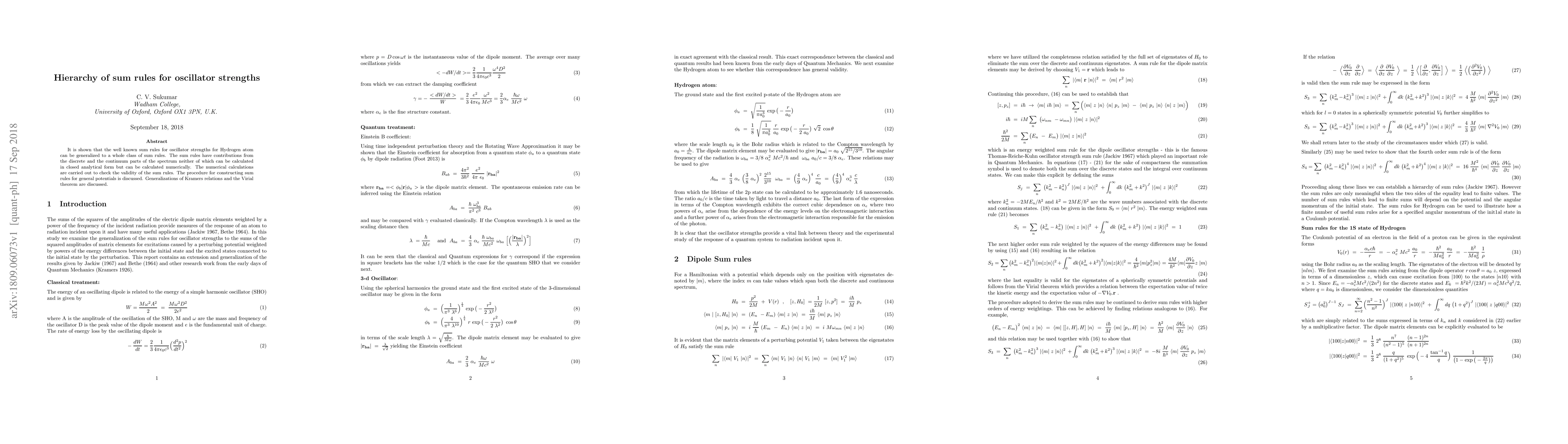 This research generalizes sum rules for oscillator strengths in the Hydrogen atom to a broader class, incorporating both discrete and continuum spectral parts. Numerical methods validate these generalized sum rules, and the paper discusses procedures for constructing such sum rules for various potentials, along with generalizations of Kramers relations and the Virial theorem.
