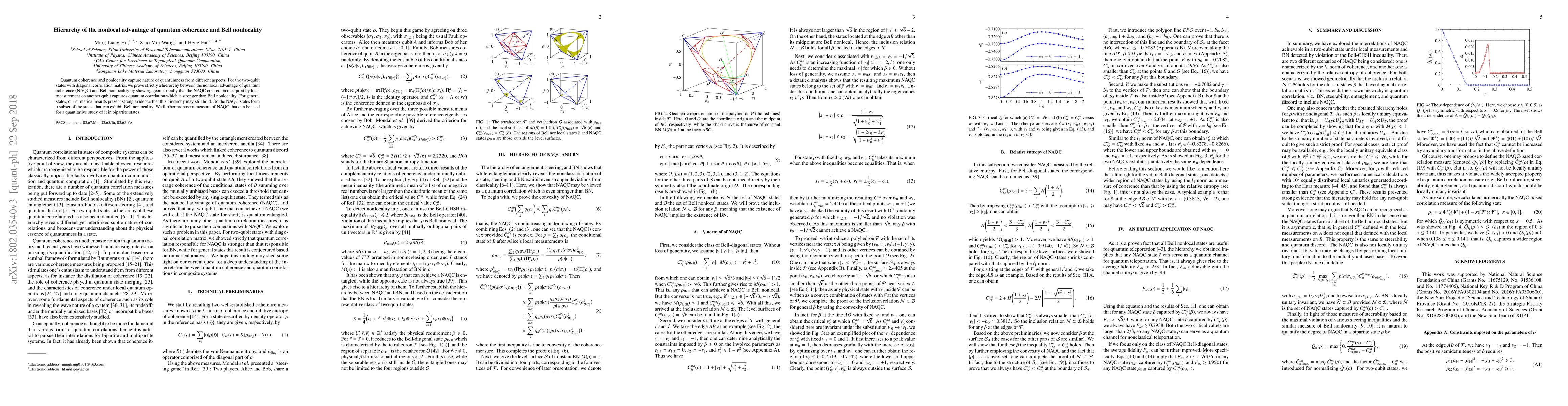 This paper establishes a hierarchy between the nonlocal advantage of quantum coherence (NAQC) and Bell nonlocality for two-qubit states, demonstrating that NAQC can capture stronger quantum correlations than Bell nonlocality. Numerical results suggest this hierarchy may extend to general states, indicating NAQC states are a subset of those exhibiting Bell nonlocality. A new NAQC measure is proposed for quantitative analysis.