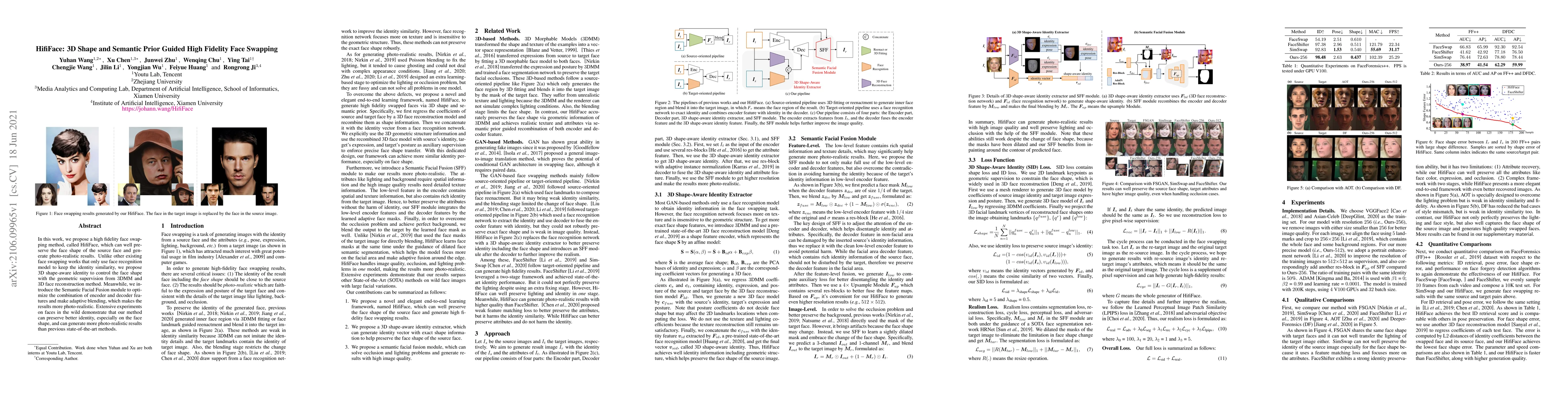 HifiFace introduces a high fidelity face swapping method that preserves the source face's 3D shape and generates photo-realistic results using 3D shape-aware identity and a Semantic Facial Fusion module. This approach outperforms existing methods in maintaining identity and realism.