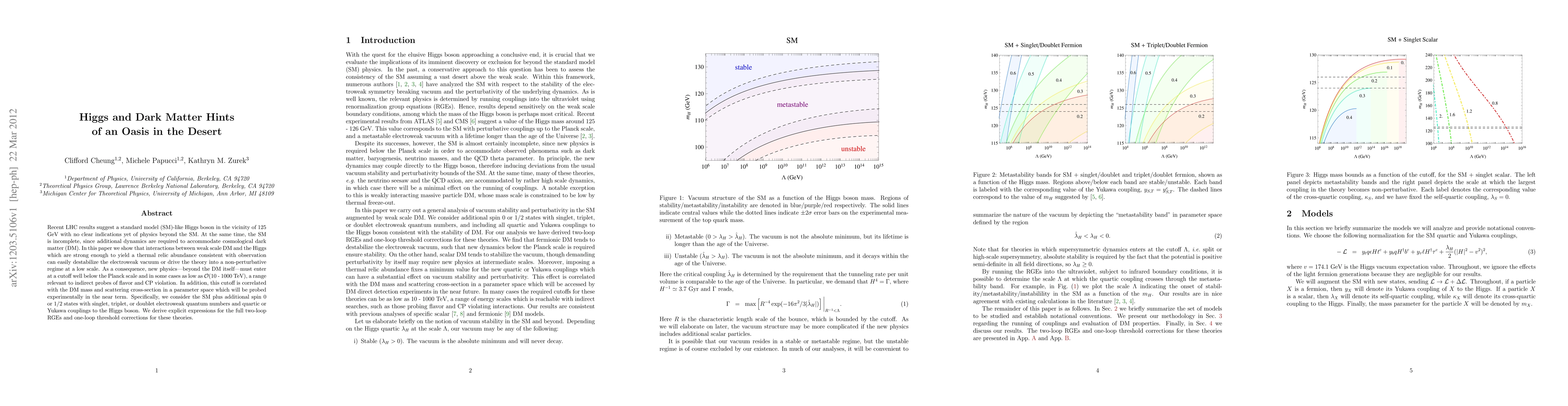Recent LHC results suggest a standard model (SM)-like Higgs boson in the vicinity of 125 GeV with no clear indications yet of physics beyond the SM. At the same time, the SM is incomplete, since additional dynamics are required to accommodate cosmological dark matter (DM). In this paper we show that interactions between weak scale DM and the Higgs which are strong enough to yield a thermal relic abundance consistent with observation can easily destabilize the electroweak vacuum or drive the theory into a non-perturbative regime at a low scale. As a consequence, new physics--beyond the DM itself--must enter at a cutoff well below the Planck scale and in some cases as low as O(10 - 1000 TeV), a range relevant to indirect probes of flavor and CP violation. In addition, this cutoff is correlated with the DM mass and scattering cross-section in a parameter space which will be probed experimentally in the near term. Specifically, we consider the SM plus additional spin 0 or 1/2 states with singlet, triplet, or doublet electroweak quantum numbers and quartic or Yukawa couplings to the Higgs boson. We derive explicit expressions for the full two-loop RGEs and one-loop threshold corrections for these theories.