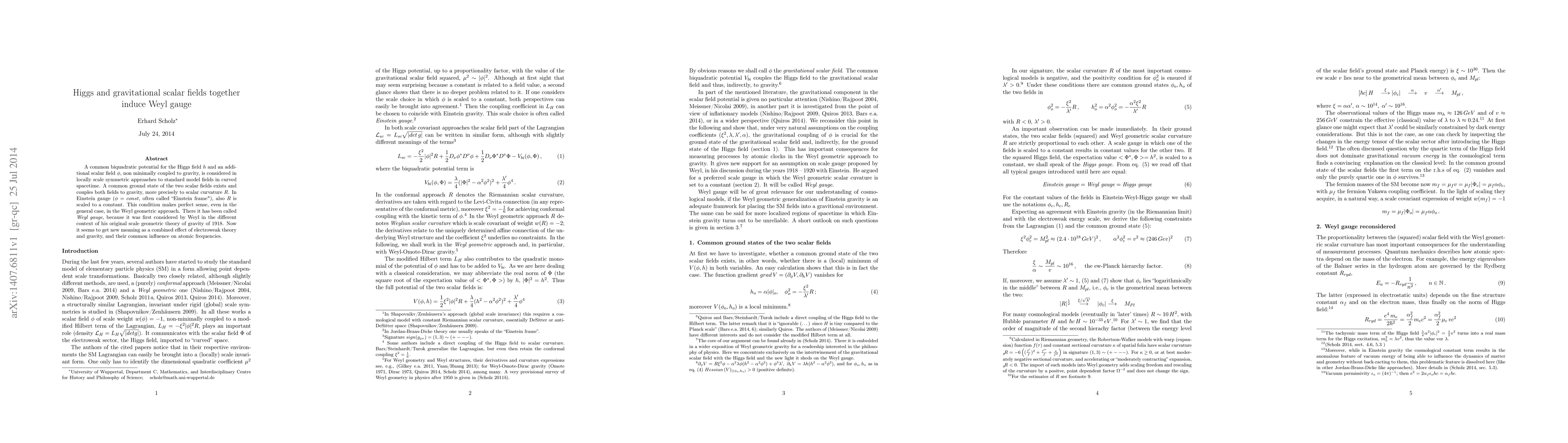 Researchers explore how a combined Higgs and gravitational scalar field can create a common ground state that couples both to gravity, a phenomenon known as the Weyl gauge, which has implications for our understanding of electroweak theory and atomic frequencies.