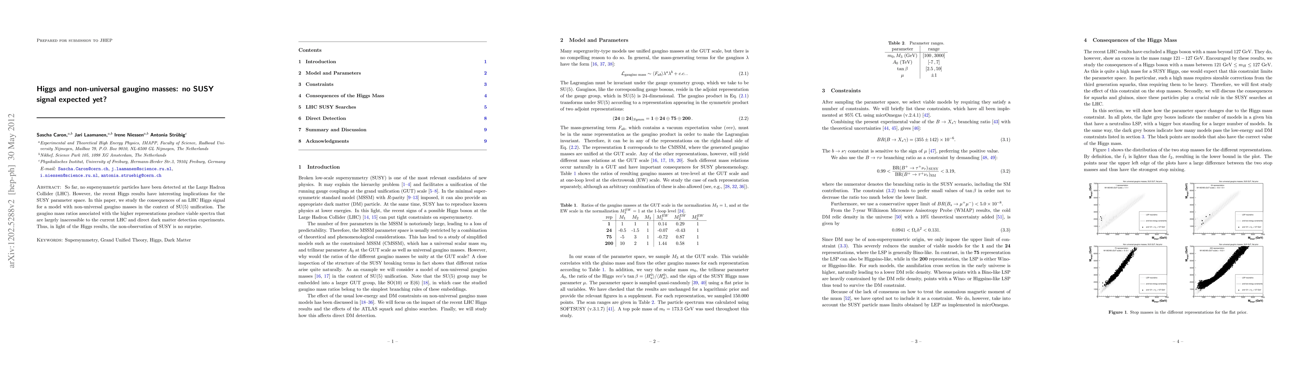 This paper examines the implications of the LHC Higgs results for a model with non-universal gaugino masses under SU(5) unification, finding that viable supersymmetric spectra remain undetected due to gaugino mass ratios that evade current LHC and dark matter detection experiments. Despite no SUSY signals yet, the absence of detection is consistent with the Higgs findings.