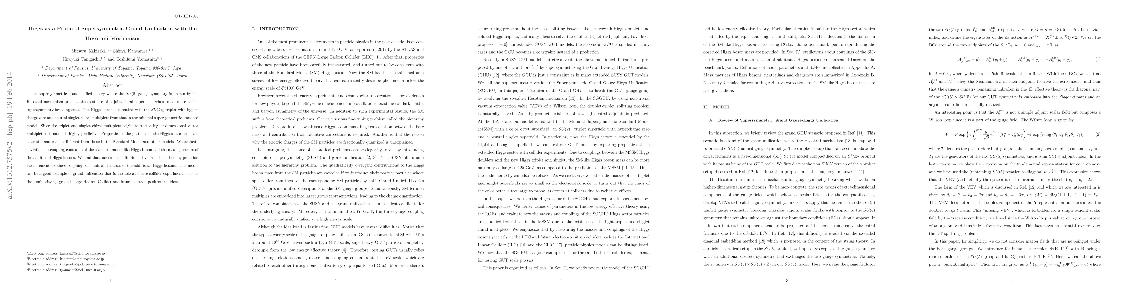 This paper explores a supersymmetric grand unified theory utilizing the Hosotani mechanism, predicting extended Higgs sectors with unique properties. The model's distinctive coupling constants and additional Higgs boson masses offer testable predictions for future collider experiments.